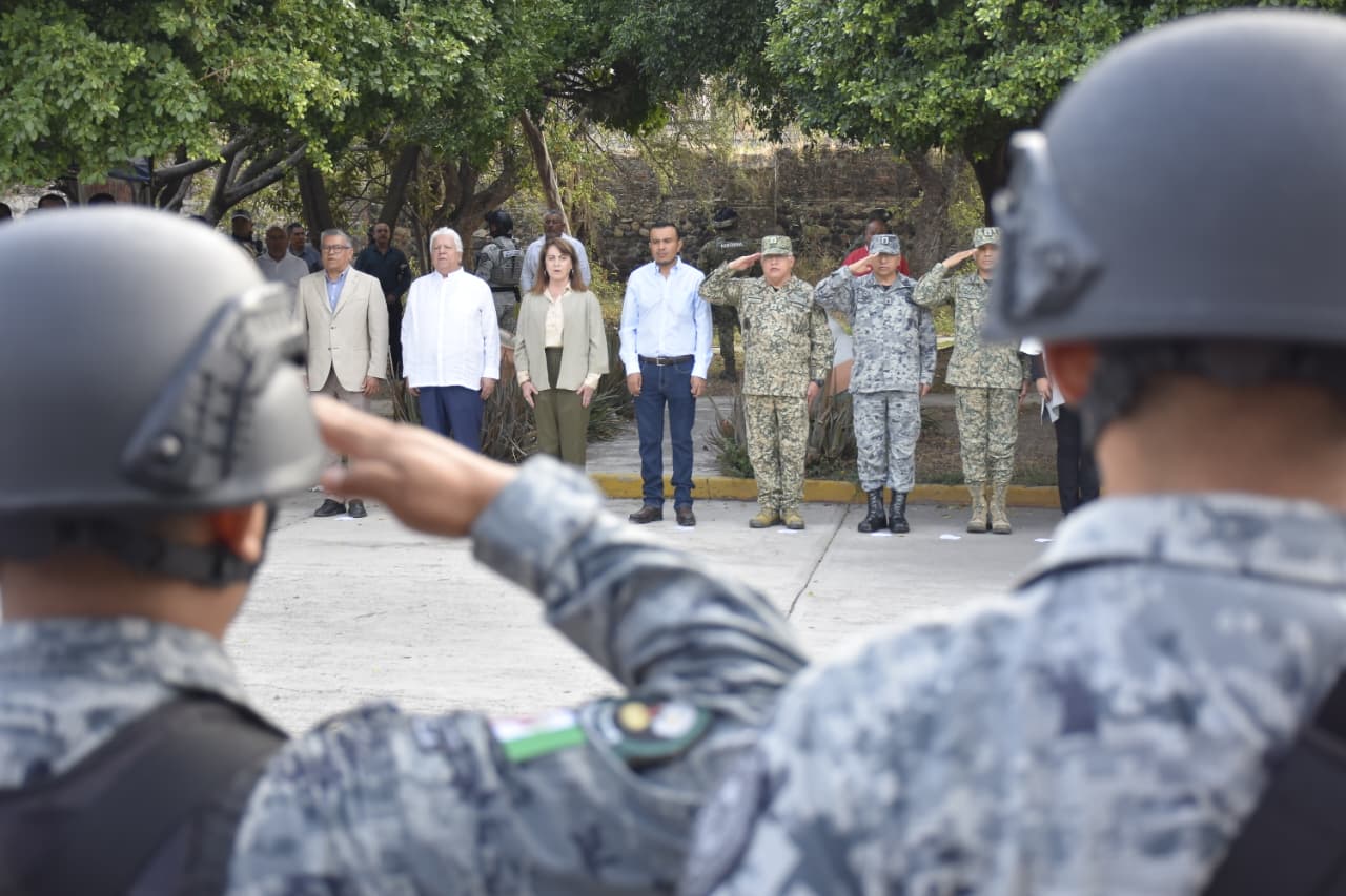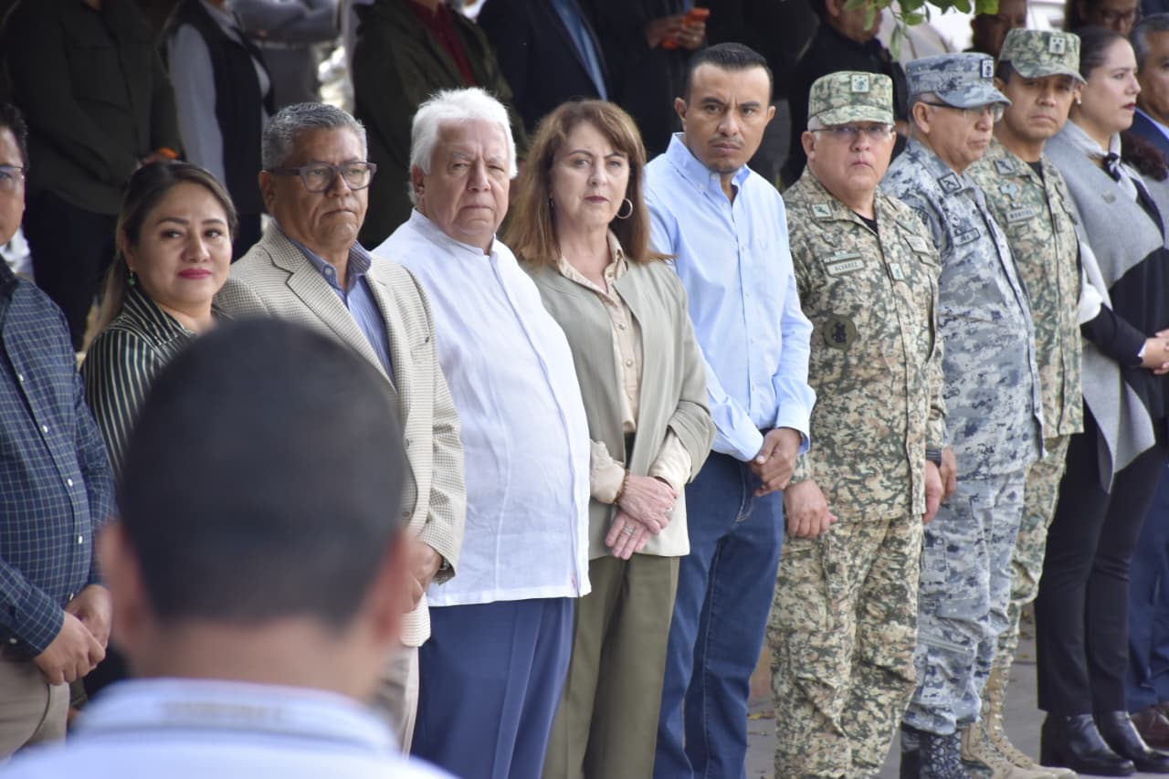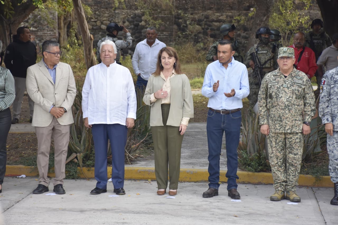 La gobernadora Margarita González Saravia presidió la ceremonia de honores a la Bandera Nacional en el municipio de Ayala, junto con los titulares de los poderes Legislativo y Judicial, este lunes.