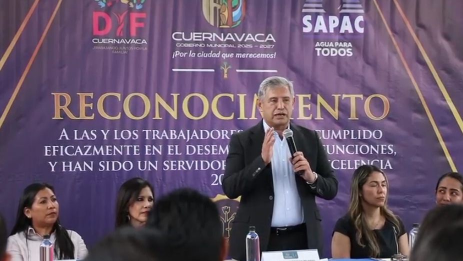 Durante su mensaje, el alcalde, acompañado de su esposa, Luz María Zagal Guzmán, presidenta del DIF Cuernavaca, destacó que el verdadero valor del Ayuntamiento radica en su capital humano, integrado por mujeres y hombres comprometidos con el servicio público. Subrayó que, desde 2022, se han impulsado acciones para dignificar las condiciones laborales, tales como el pago puntual de salarios y prestaciones, así como la mejora de espacios y herramientas de trabajo.