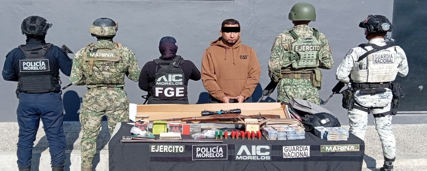 En el municipio de Ayala, tras un reporte al 911 por violencia contra la mujer, fue detenido Valentín “N”, de 32 años, quien presuntamente privó de la libertad a una menor de edad, misma que fue liberada y entregada a sus familiares. Al momento de su detención portaba un arma larga tipo escopeta calibre 12 con nueve cartuchos útiles y viajaba en un vehículo Ford F150 blanca con negro, con placas del estado de Guerrero, con probable alteración en sus medios de identificación.