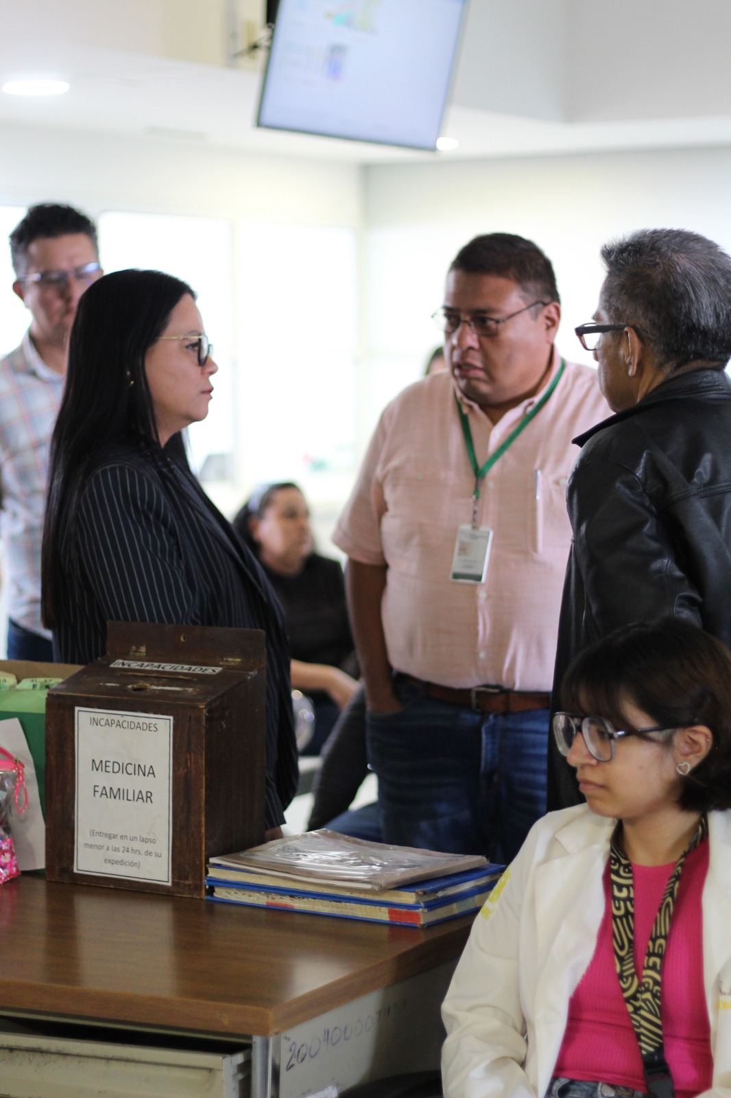 La encargada del IMSS en Morelos, doctora Mónica Arriaga Arroyo, acompañada por directivos del nosocomio, integrantes de Cuerpo de Gobierno y parte del equipo de supervisión, recorrió el servicio de laboratorio, Medicina Familiar, archivo, Rayos X y hospitalización.