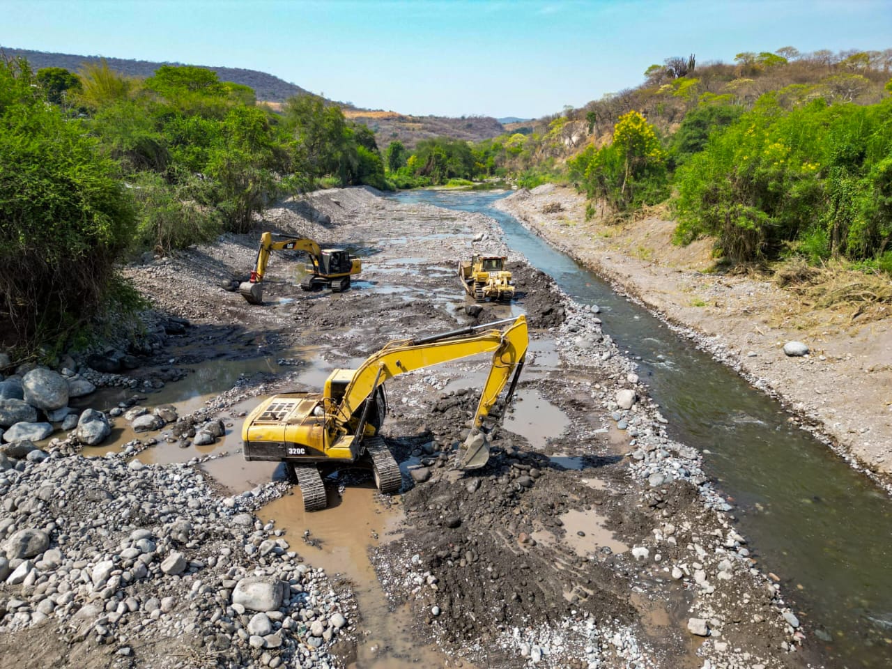 Por su parte, el secretario ejecutivo de la Comisión Estatal del Agua (Ceagua), Javier Bolaños Aguilar, explicó que los trabajos contemplan excavación y conformación de nueve mil 250 metros cúbicos de bordo, así como la construcción de la protección marginal mediante esta misma estructura, con el propósito de incrementar la capacidad hidráulica del cauce y proteger la infraestructura de agua potable existente.