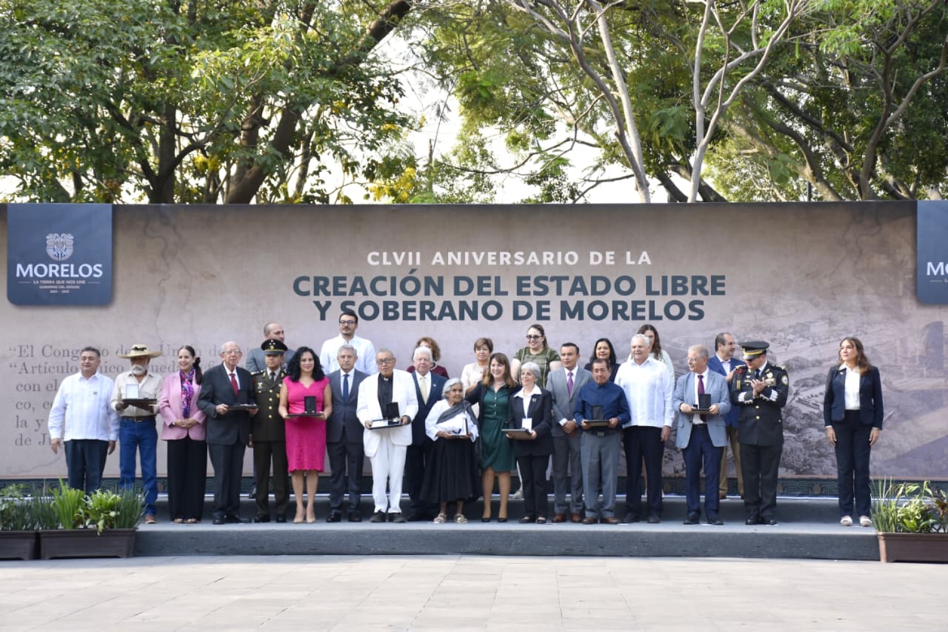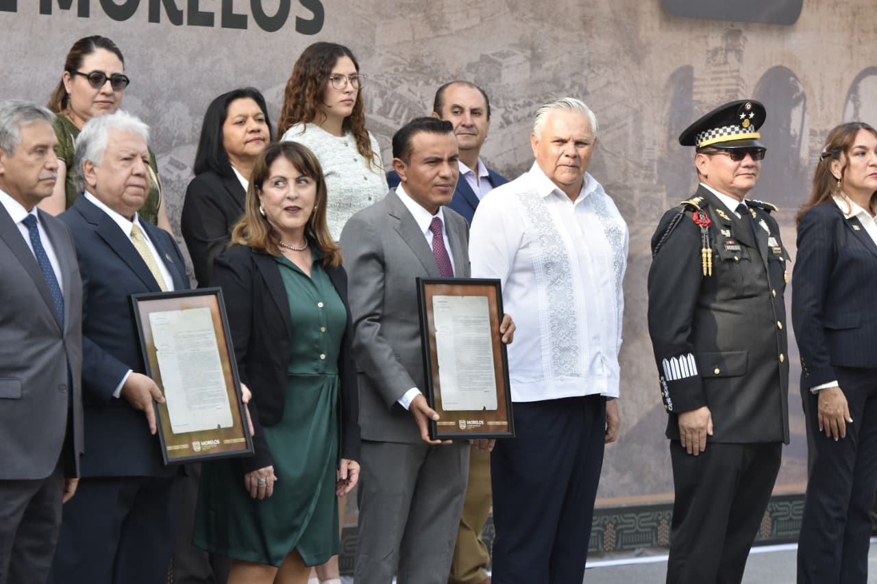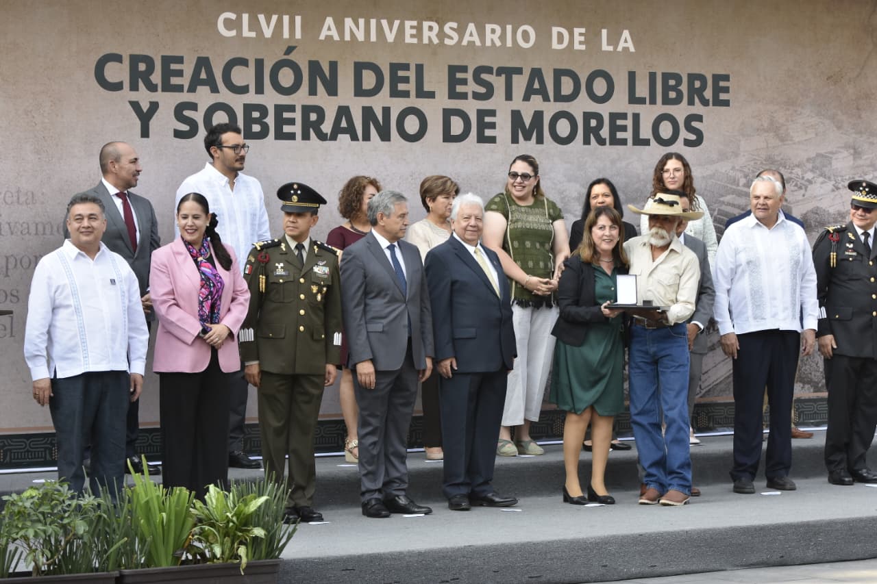 Esta mañana, la gobernadora Margarita González Saravia preside la ceremonia de conmemoración del CLVII Aniversario de la Creación del Estado Libre y Soberano de Morelos y entrega de la venera “José María Morelos y Pavón”, en la plaza "General Emiliano Zapata Salazar", en el zócalo de Cuernavaca; más tarde llevará a cabo la inauguración de la exposición "Nacer entre espinas", en el palacio de gobierno.