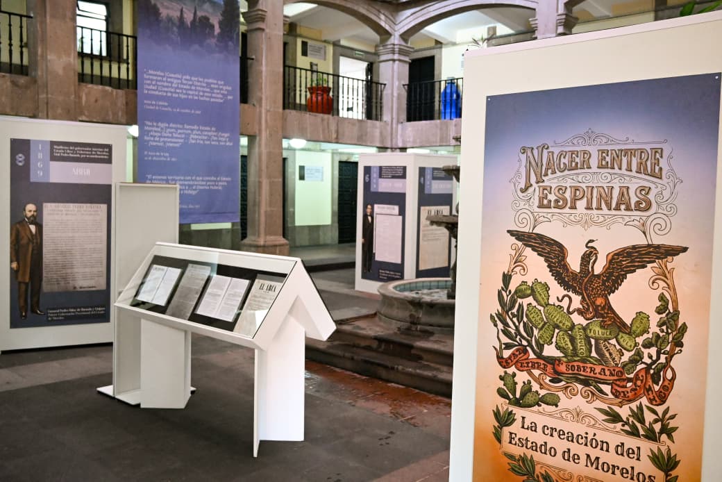 En el marco del 157 aniversario de la creación del estado de Morelos, la gobernadora Margarita González Saravia encabezó la inauguración de la exposición documental e histórica “Nacer entre espinas”, que, a través de mapas, personajes y documentos históricos, da a conocer el origen de esta “Tierra que nos une”.