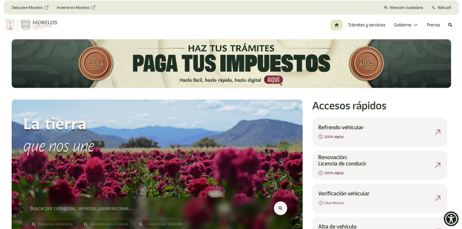 La Agencia de Transformación Digital del Estado de Morelos (ATDEM), encabezada por Samuel Rivera Muciño, informa a la ciudadanía que el portal oficial del Poder Ejecutivo, morelos.gob.mx cuenta con un enlace habilitado para que las y los ciudadanos puedan realizar, de manera fácil y rápida, el pago de impuestos y acceder a diversos servicios que ofrecen las dependencias estatales.