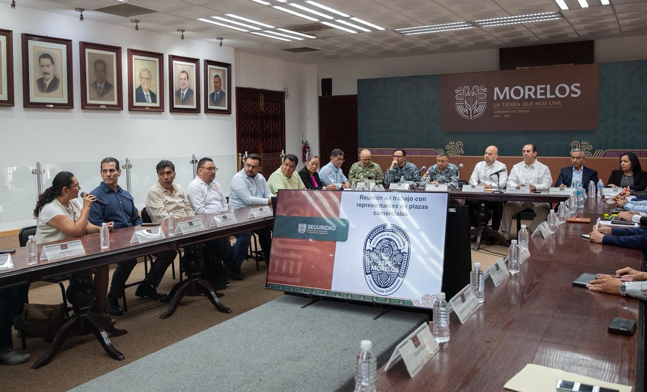 Por instrucción de la gobernadora, Margarita González Saravia, integrantes de la Mesa de Coordinación Estatal para la Construcción de Paz y Seguridad sostuvieron una reunión de trabajo con representantes de plazas comerciales y cámaras empresariales, con el objetivo de fortalecer acciones y estrategias en materia de seguridad.