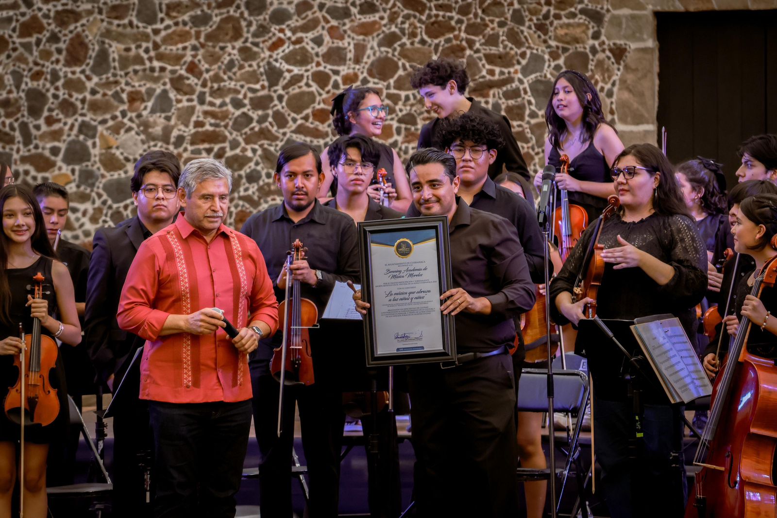 Durante el evento, el alcalde, acompañado de su esposa, Luz María Zagal Guzmán, presidenta del Sistema Municipal DIF Cuernavaca, reconoció el talento y compromiso de la Academia de Música Benning y de su fundador, Tito Quiroz, resaltando la importancia de generar espacios donde niñas, niños y jóvenes no solo accedan a la cultura, sino que se conviertan en protagonistas de ella.