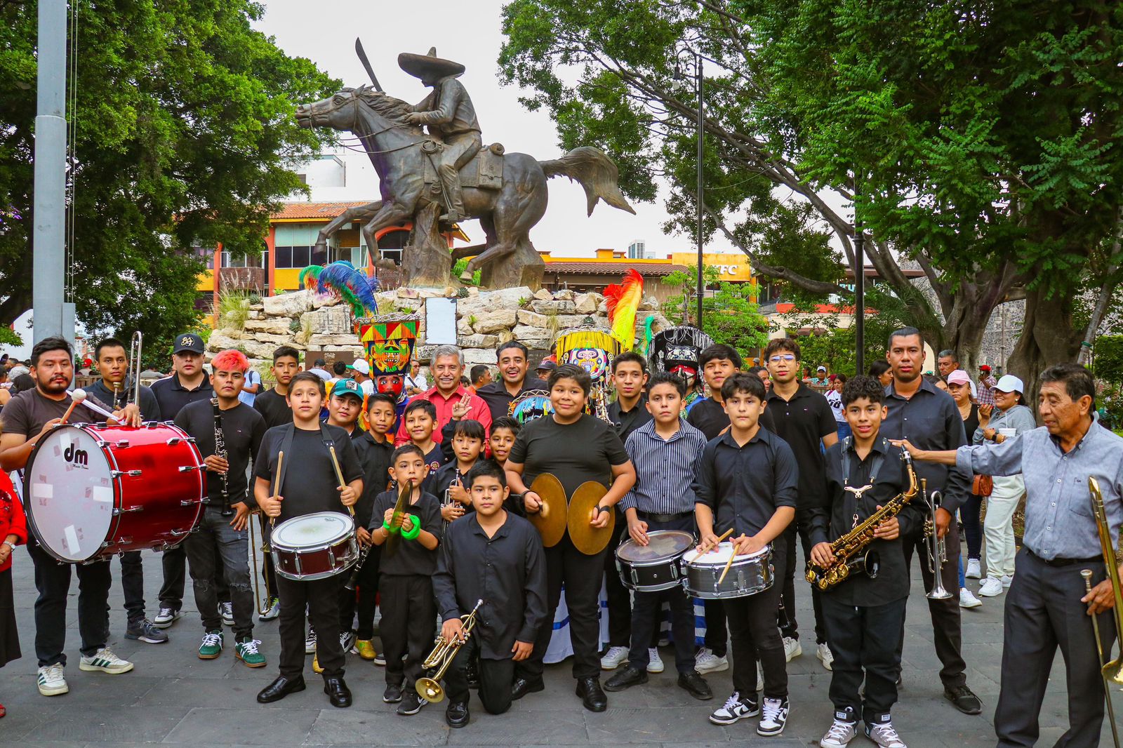 La jornada cultural comenzó incluso antes del primer acorde, con la energía y tradición de los chinelos, quienes, con su danza festiva y colorida, recorrieron la explanada del palacio de Cortés y la plaza General Emiliano Zapata, llenando de identidad y orgullo morelense cada rincón del centro de la ciudad.