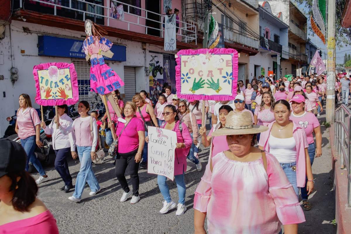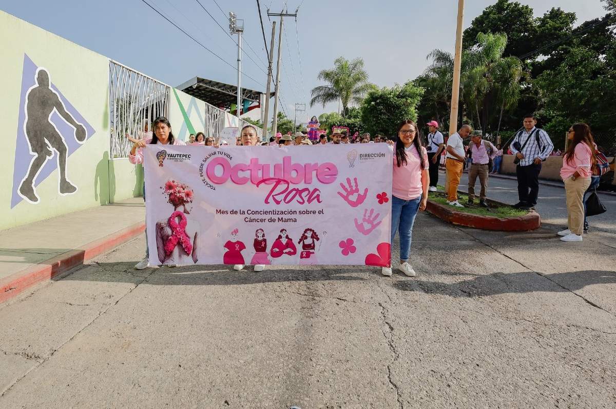Yautepec.- En conmemoración del Día Mundial de la Lucha Contra el Cáncer de Mama, autoridades y trabajadoras municipales encabezaron una marcha por las principales calles de la ciudad, con el objetivo de concienciar acerca de la importancia de la detección temprana del cáncer de mama.