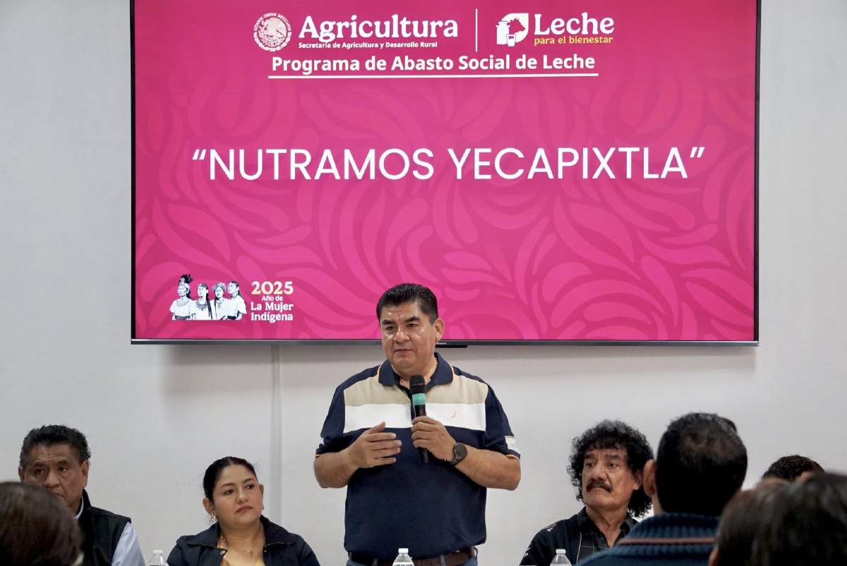 Yecapixtla.- La mañana de este miércoles, el alcalde de este municipio, Heladio Rafael Sánchez Zavala, acompañado de su esposa, Yuridia Méndez Alanís, presidenta del DIF municipal, y de Luis Bravo Pérez, subdelegado de Leche para el Bienestar Morelos, encabezó el lanzamiento del Programa de Abasto Social de Leche “Nutramos Yecapixtla”, enfocado en mejorar la alimentación de las familias y la comunidad estudiantil del municipio.