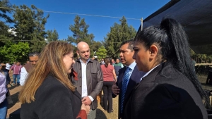 En representación del presidente municipal, Jesús Corona Damián, acudió la secretaria municipal, Ana Moreno Hurtado, acompañada por el secretario de Seguridad Pública Municipal, Rubén Sánchez, y el tesorero municipal, Jonathan Espinoza, quienes atestiguaron la entrega y formalización de las unidades asignadas al municipio.