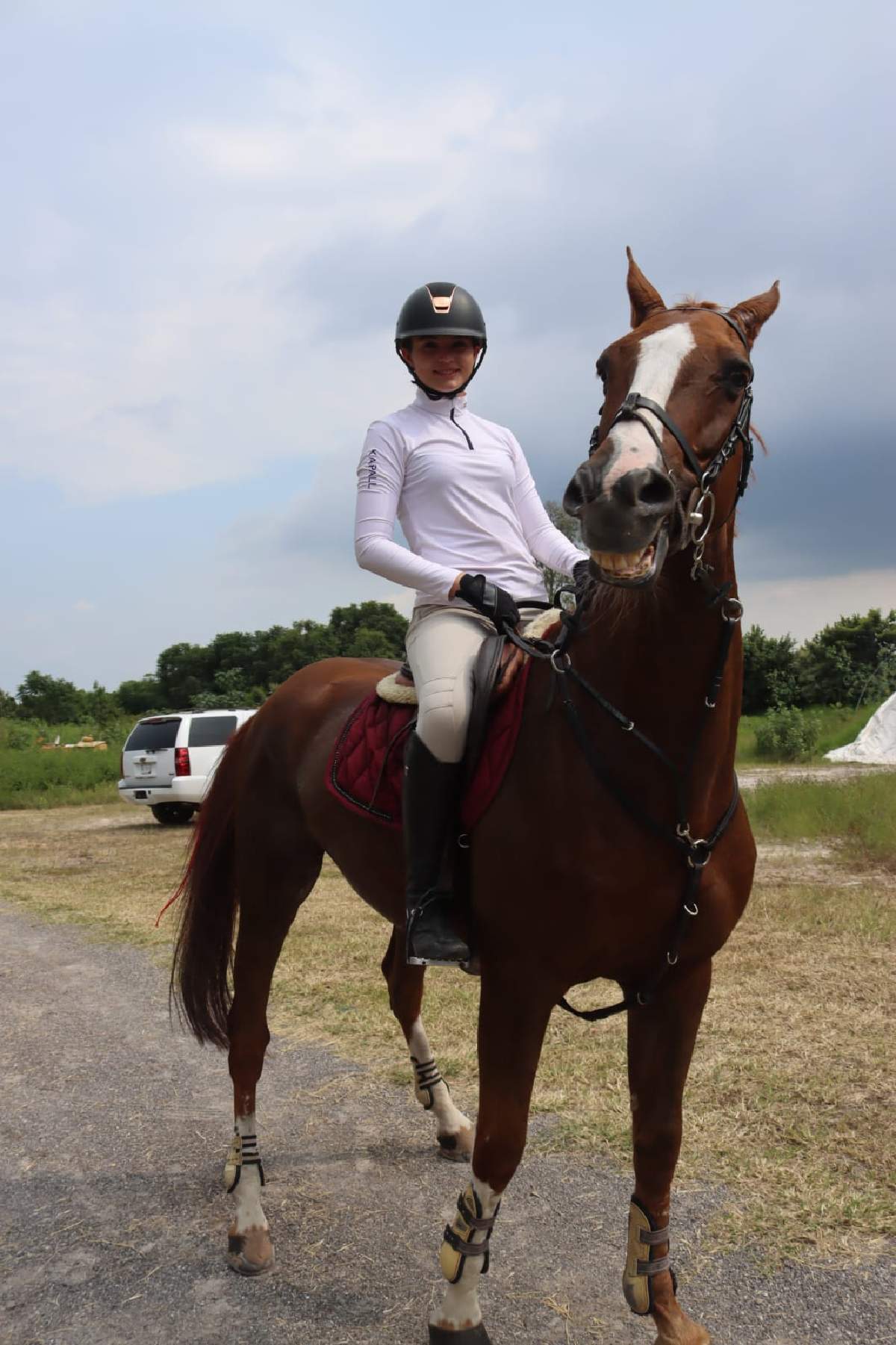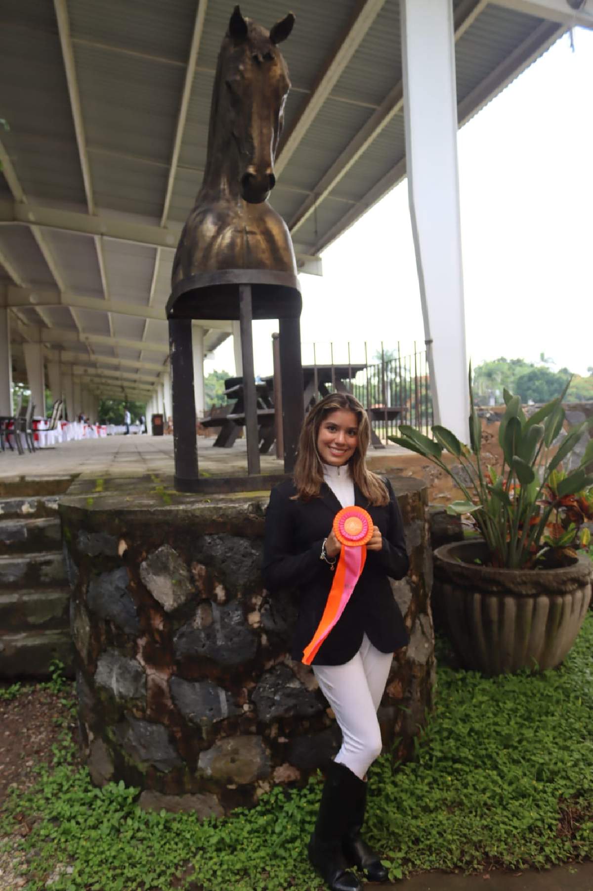 María Regina Flores obtuvo moña al completar sus recorridos de manera limpia con su corcel Gala VDL, en la prueba de 0.75 metros.