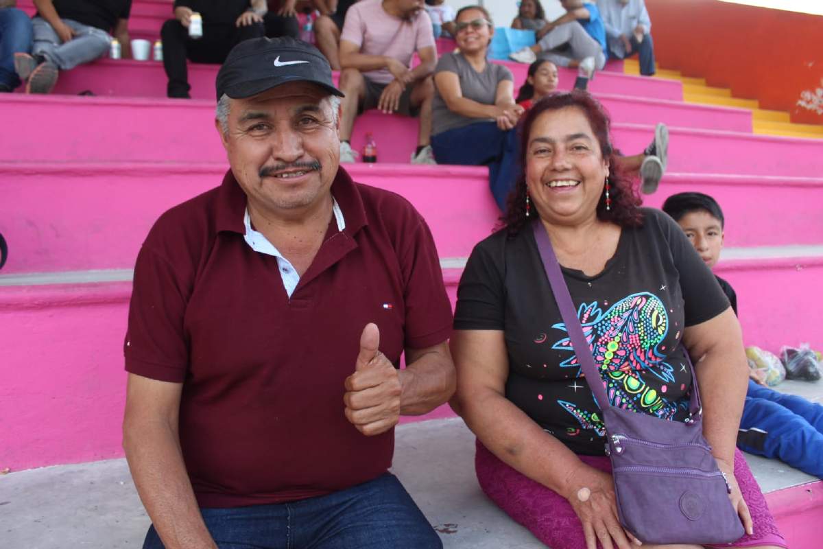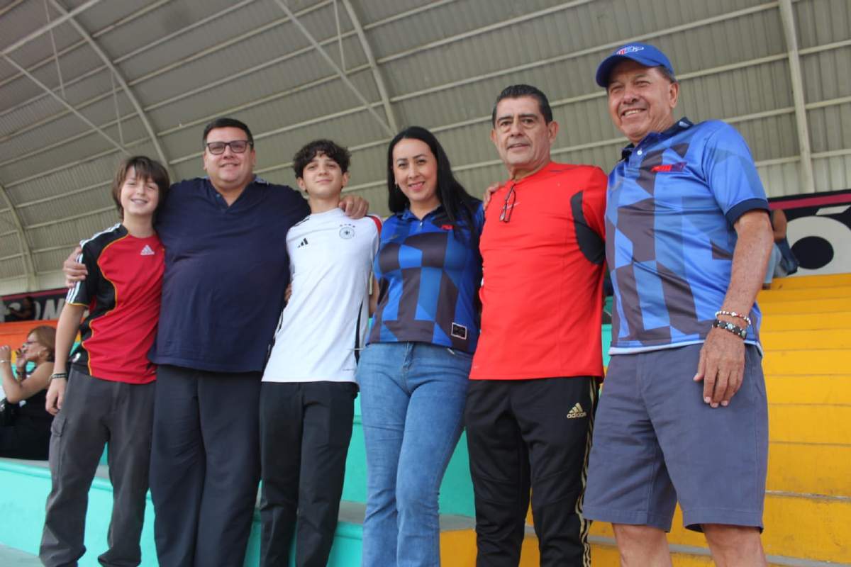 Alex Marín, hijo de Miguel Marín; Gilberto Alcalá, exárbitro profesional; y Alma y Arturo Albarrán, directivos del Atlético Real Morelos 27.