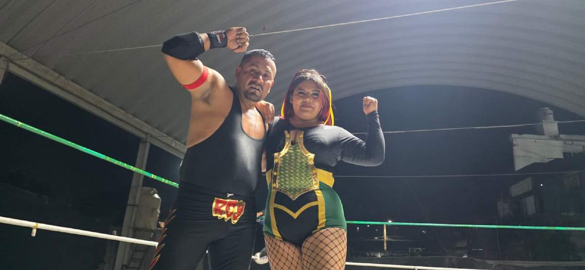 Además de su reconocimiento, Águila Tapada recibió un cinturón simbólico por su dedicación a la lucha libre morelense.