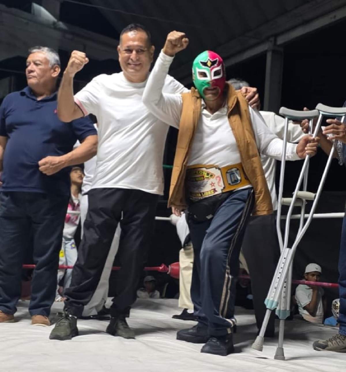 El comisionado en turno, Víctor Gómez Tapia, entregó un cinturón simbólico, por su entrega y dedicación a la lucha libre morelense, al gladiador Águila Tapada.