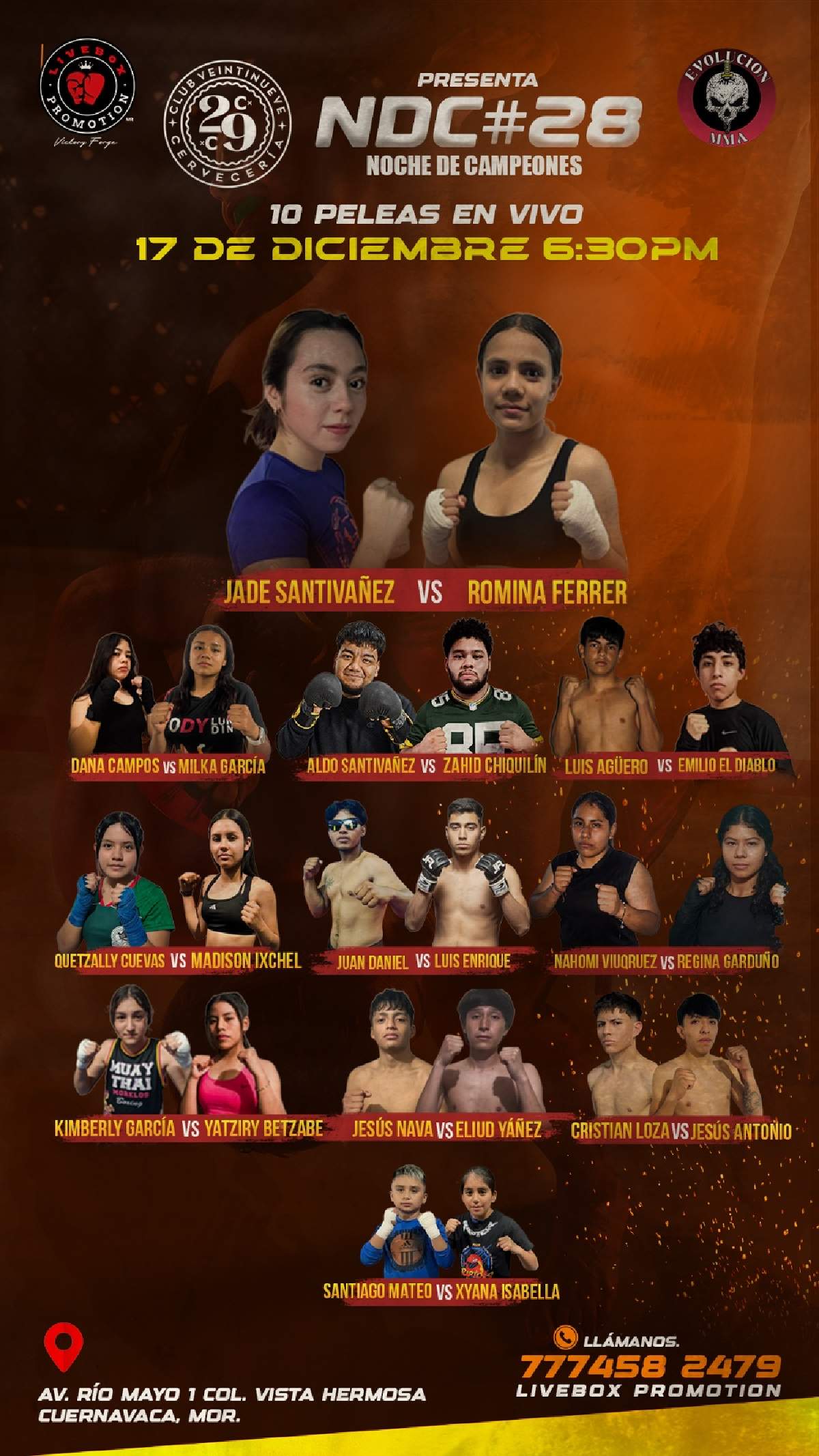 La función –organizada por LiveBox Promotion y por la Escuela de Artes Marciales Evolución Temixco– comenzará a las 6:30 de la tarde. La Unión de Morelos estará presente como patrocinador oficial del deporte en el estado.