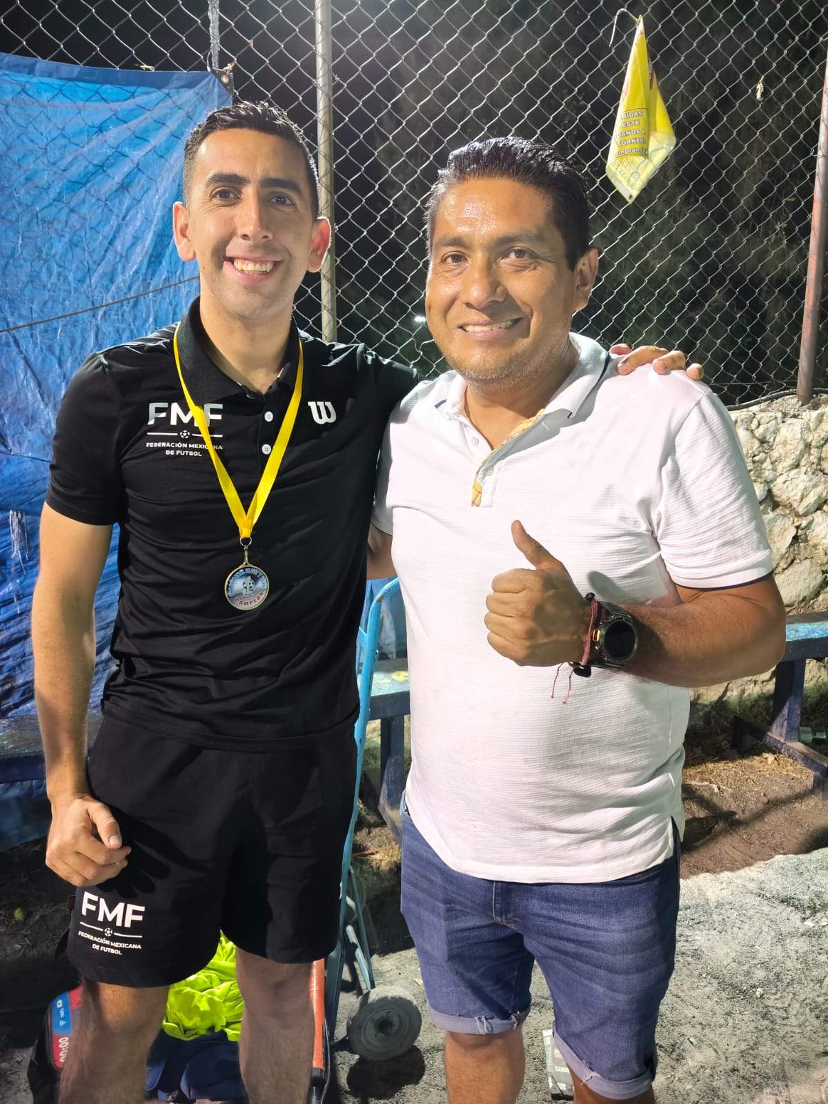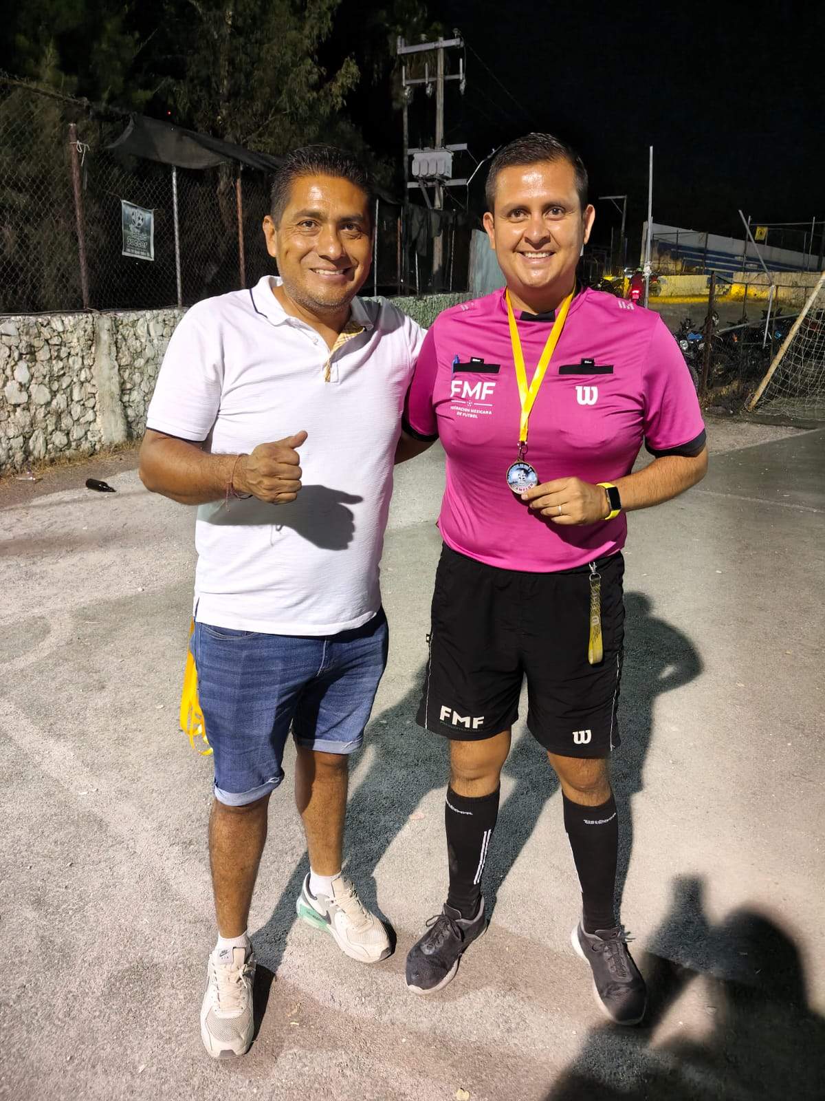 Salvador Quiroz, organizador del torneo, y el cuerpo arbitral.