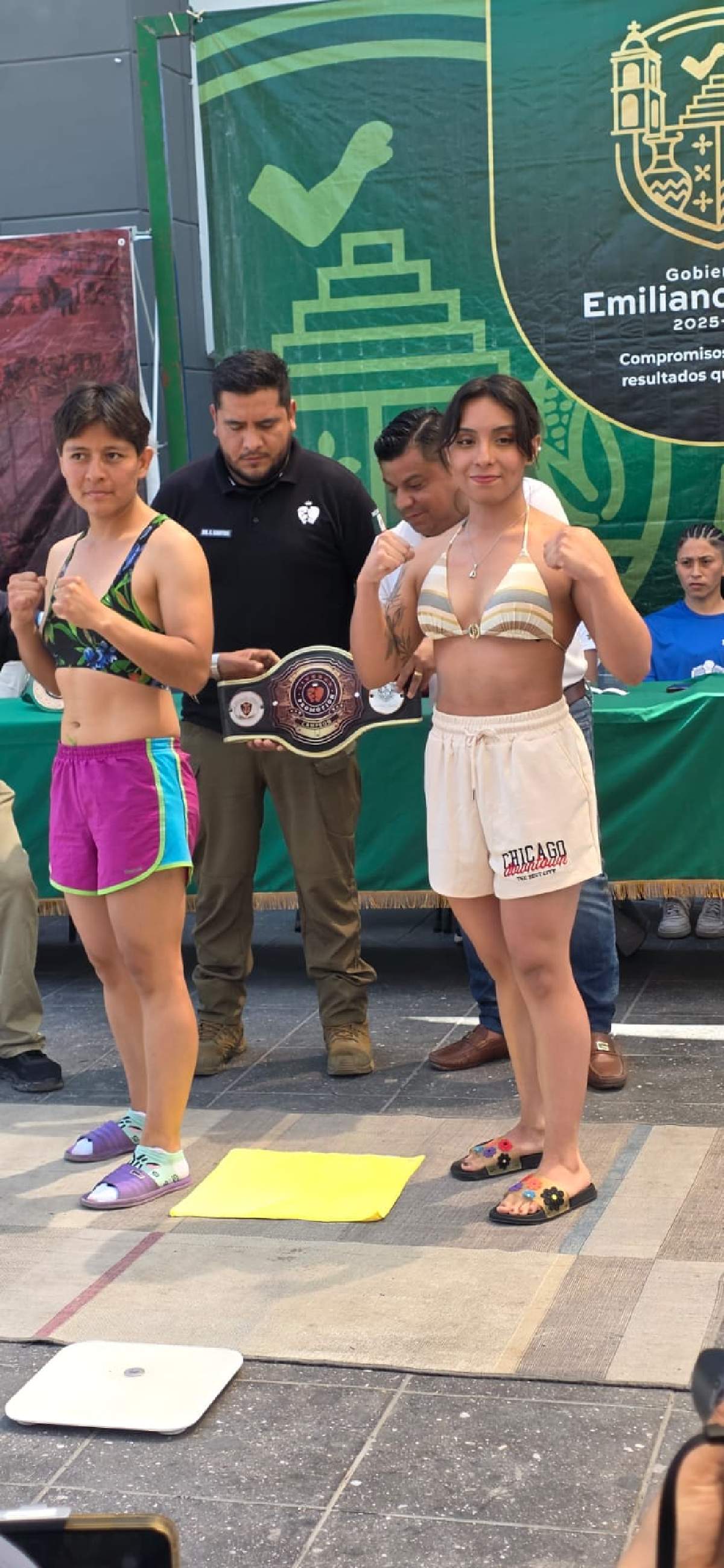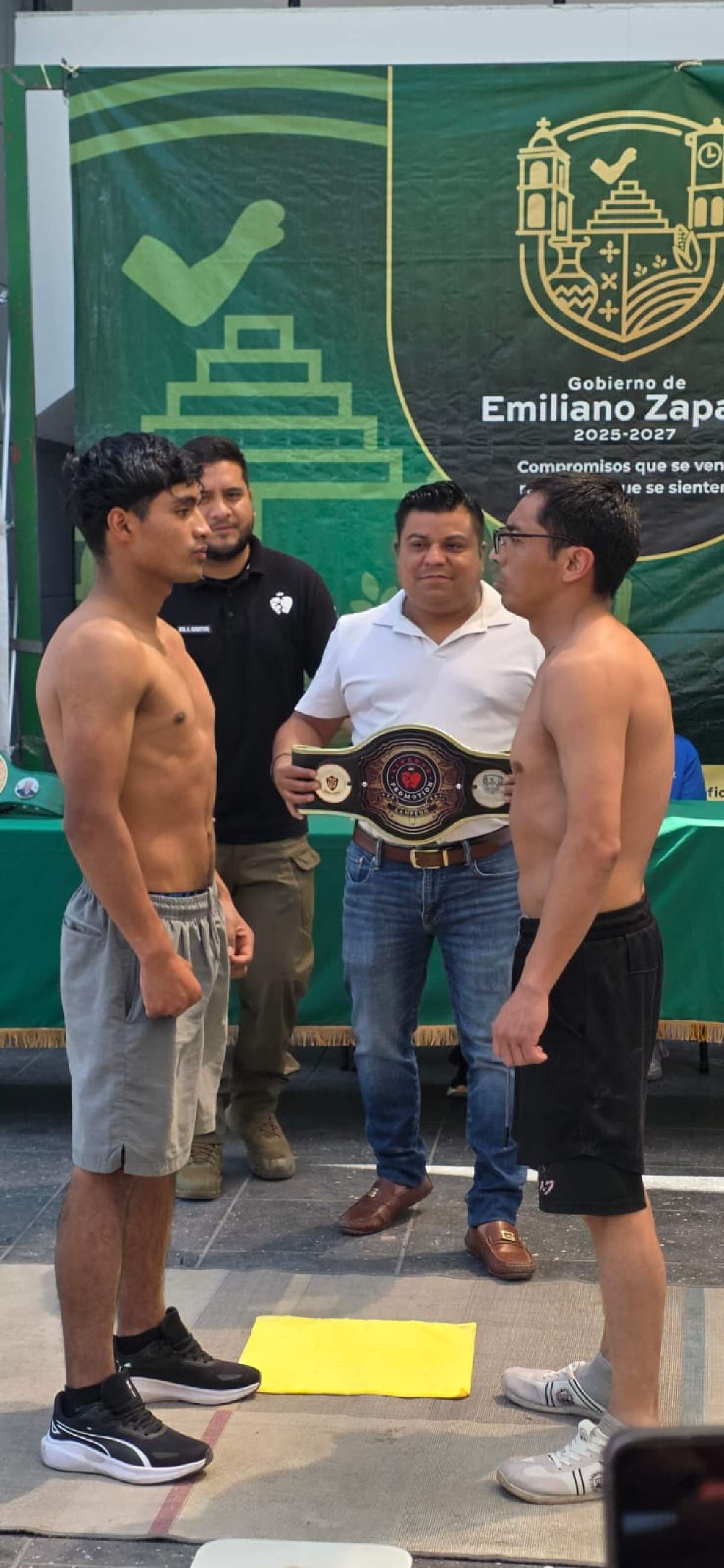 Todo está listo para la gran función de box profesional gratuita, organizada por Livebox Promotion en el municipio de Emiliano Zapata. Ayer se llevó a cabo el pesaje de los peleadores en la explanada municipal.
