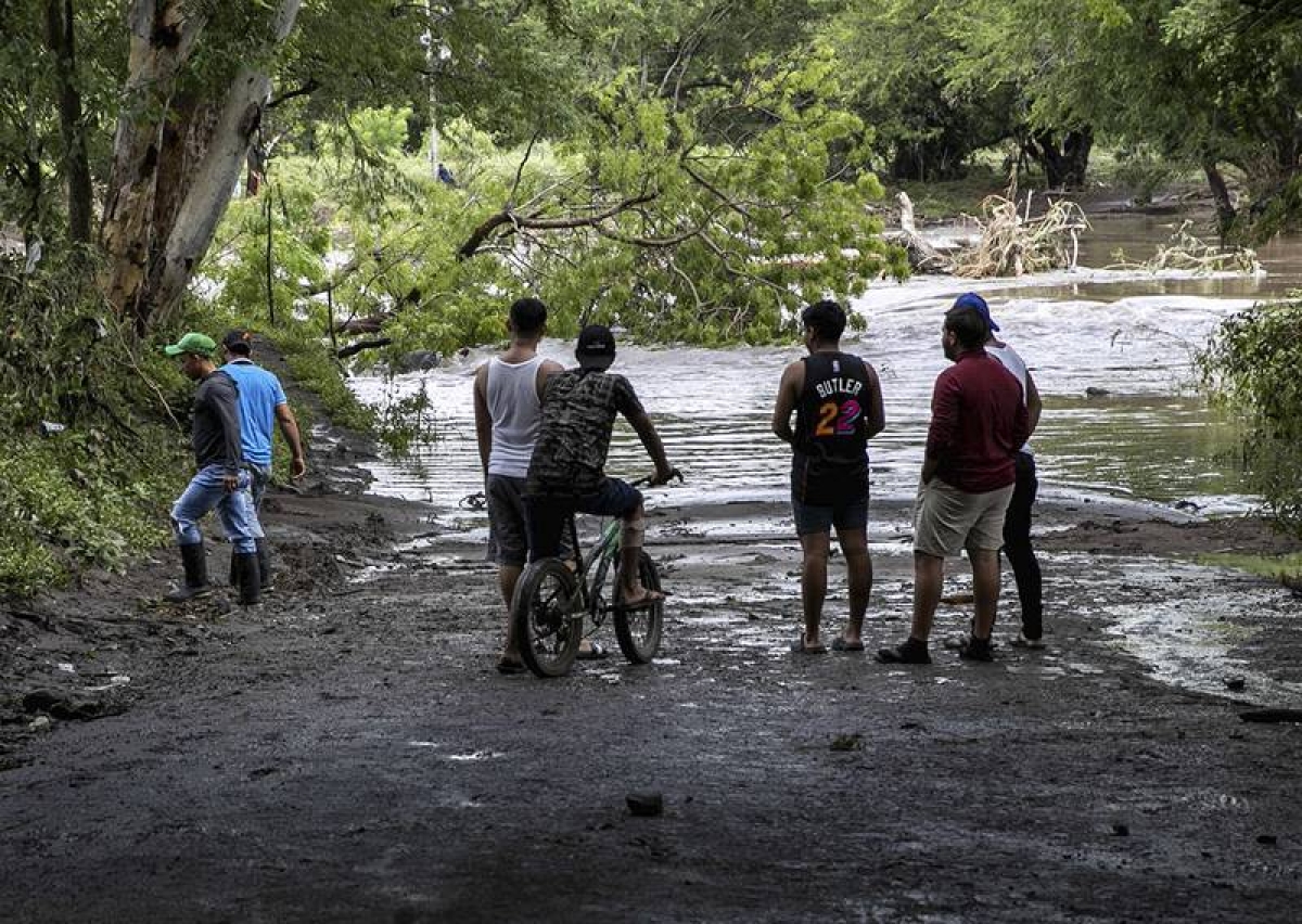En El Salvador tocó tierra el domingo con fuertes aguaceros y vientos de 70 kilómetros por hora que provocaron desbordamiento de ríos, caída de árboles y que dejaron las calles anegadas.