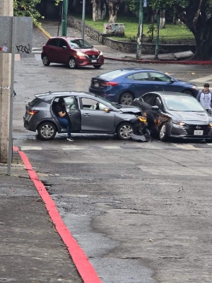 Un choque entre dos vehículos ocurrió en el cruce de la avenida Morelos y la calle Cuauhtemotzin del primer cuadro de Cuernavaca, la mañana del miércoles, lo que provocó congestionamiento vial.
