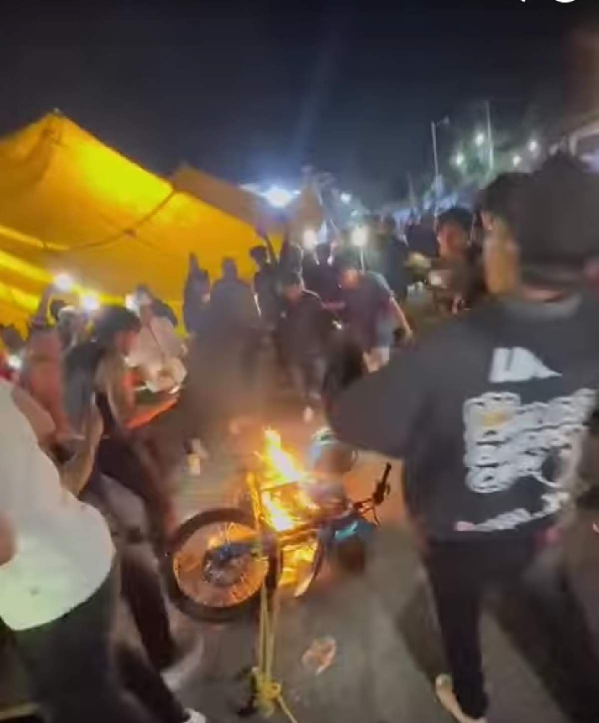 Asimismo, incendiaron tanto la carpa principal como una motocicleta que sería sorteada.