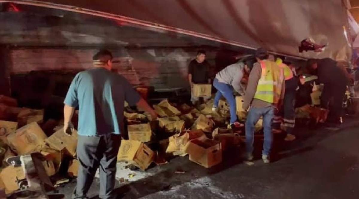 El percance ocurrió sobre la autopista México-Acapulco; el chofer resultó lesionado y varias personas se llevaron varios cartones de la bebida.