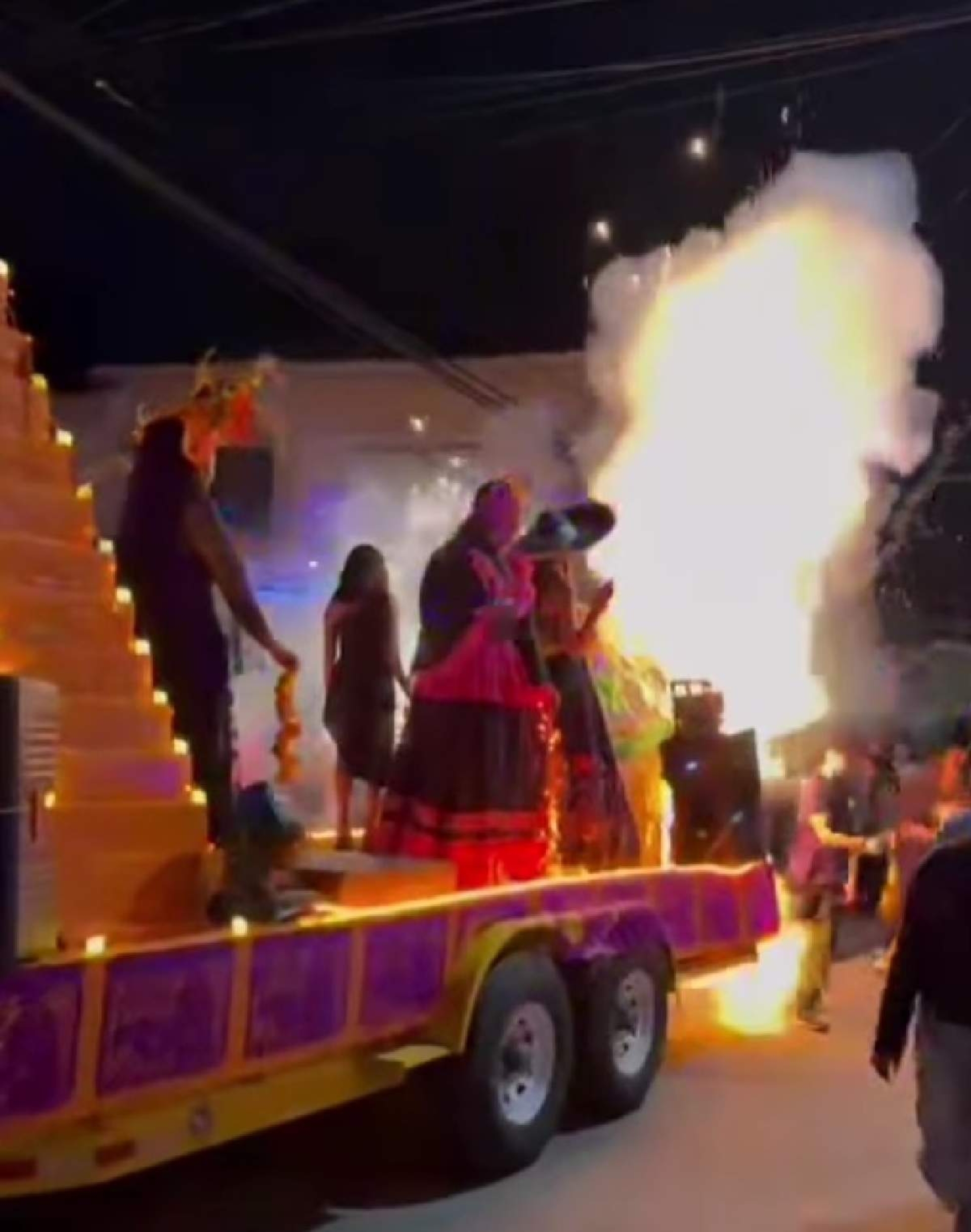 El incidente ocurrió alrededor de las 20:00 horas en la calle 5 de Febrero de la colonia Justo Sierra, donde uno de los vehículos participantes trasladaba fuegos artificiales como parte de su decoración.