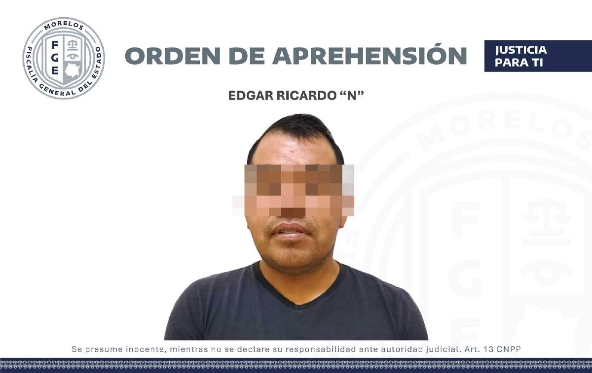 El personal de la Fiscalía General de Morelos informó que los elementos de la Agencia de Investigación Criminal (AIC) cumplimentaron una orden de aprehensión en contra de Édgar Ricardo “N” por el delito de violencia familiar, en hechos ocurridos en el municipio de Huitzilac.