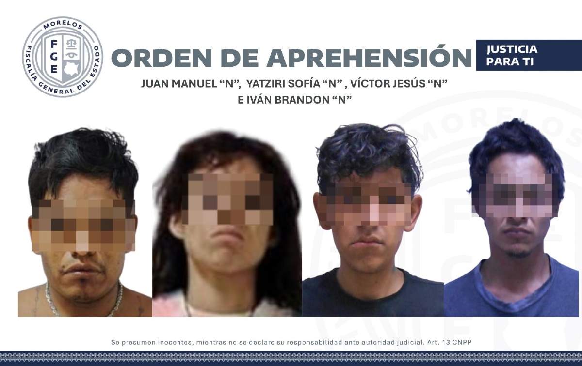 La Fiscalía General del Estado (FGE) informó que los ahora aprehendidos responden a los nombres de Yatziri Sofía “N”, Juan Manuel “N”, Víctor Jesús “N” e Iván Brandon “N”.
