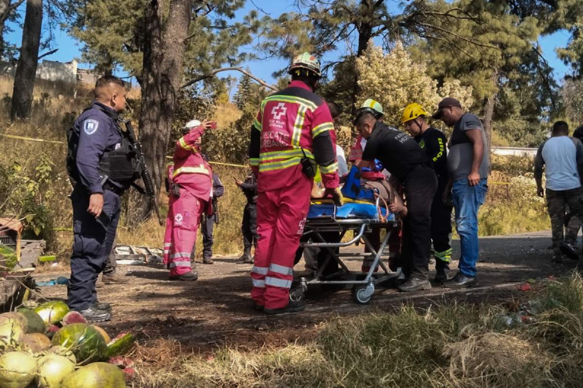 Un hombre falleció y una mujer y un individuo más sufrieron heridas al volcar el camión de carga en el que viajaban, en el municipio de Huitzilac.