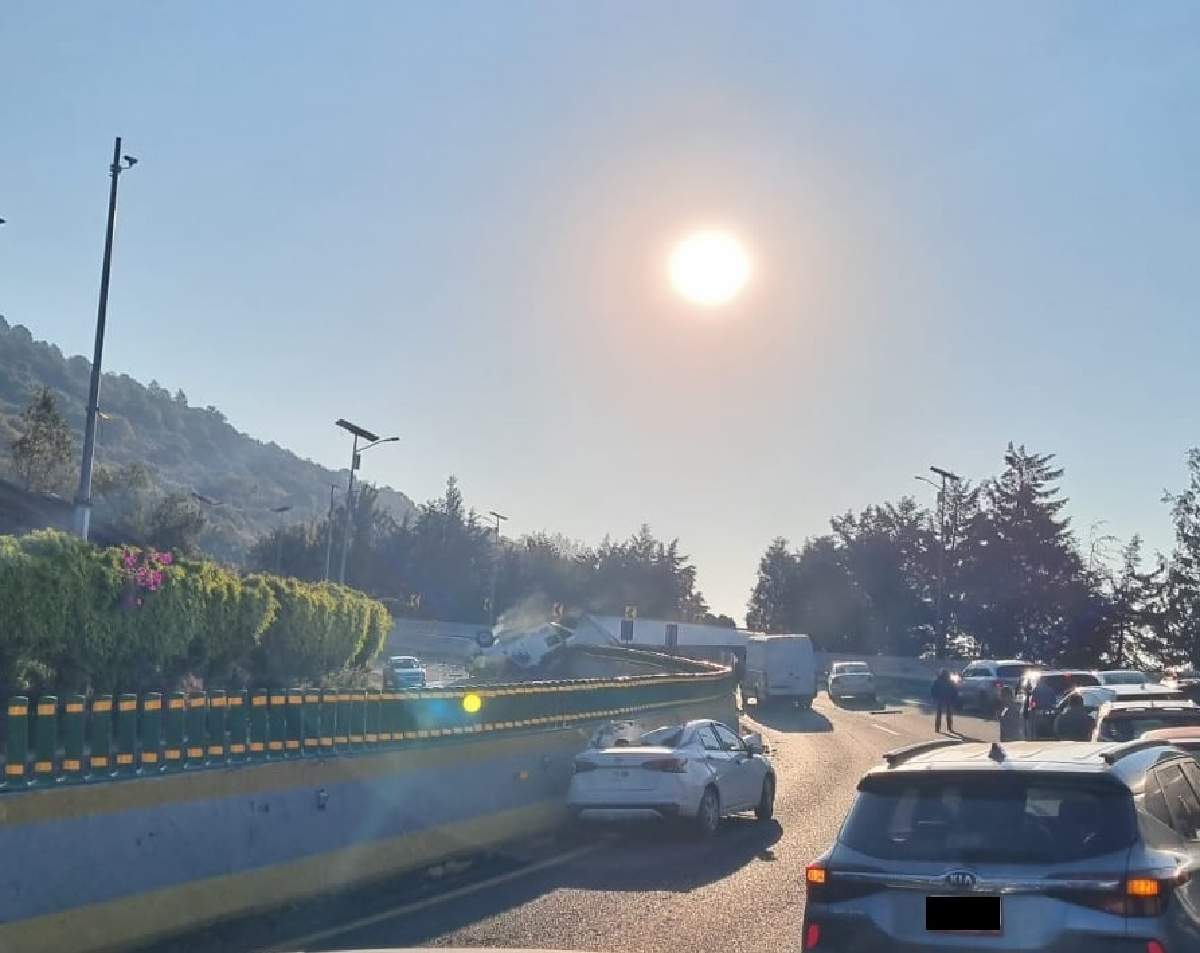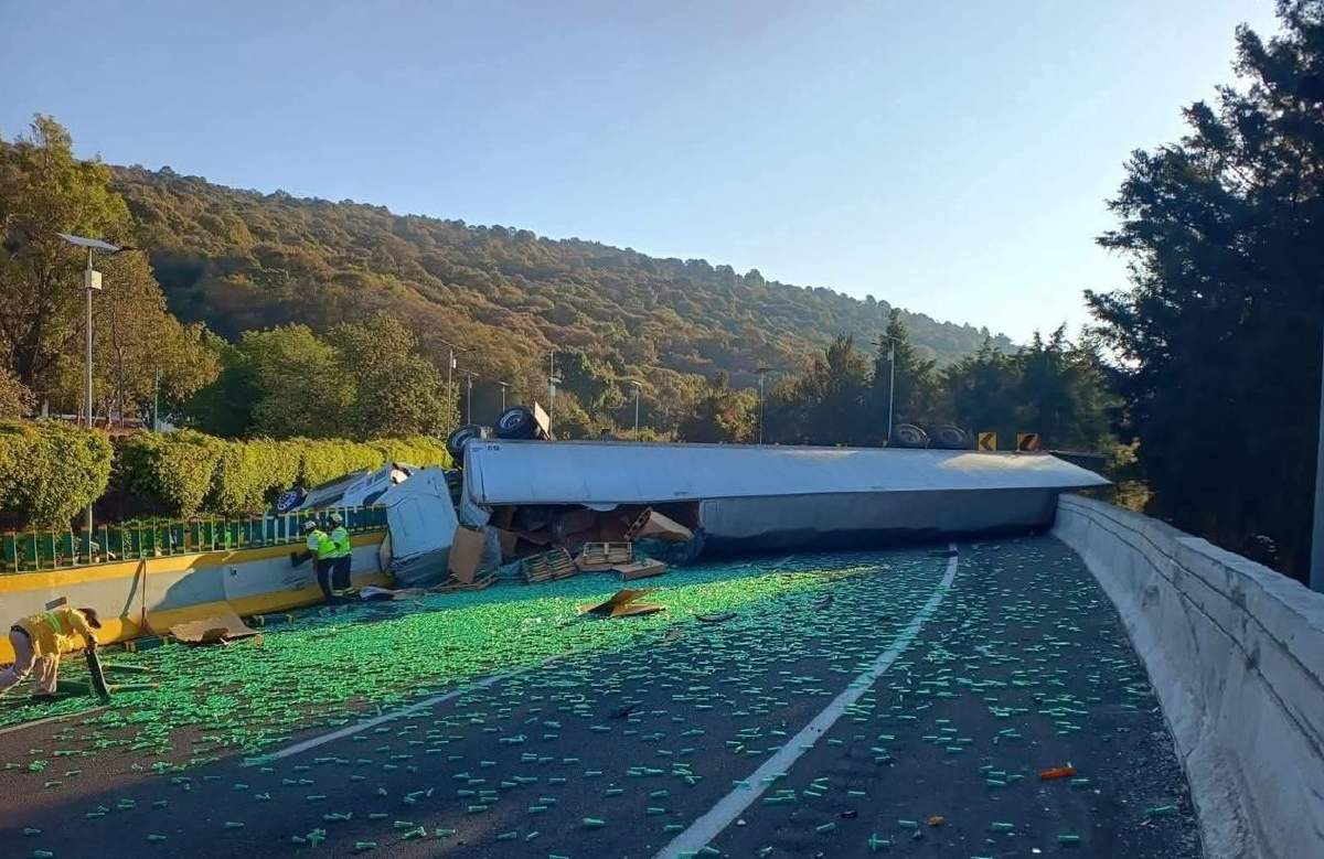 En ese lugar, un tráiler que transportaba plástico volcó en los carriles que conducen hacia la Ciudad de México.