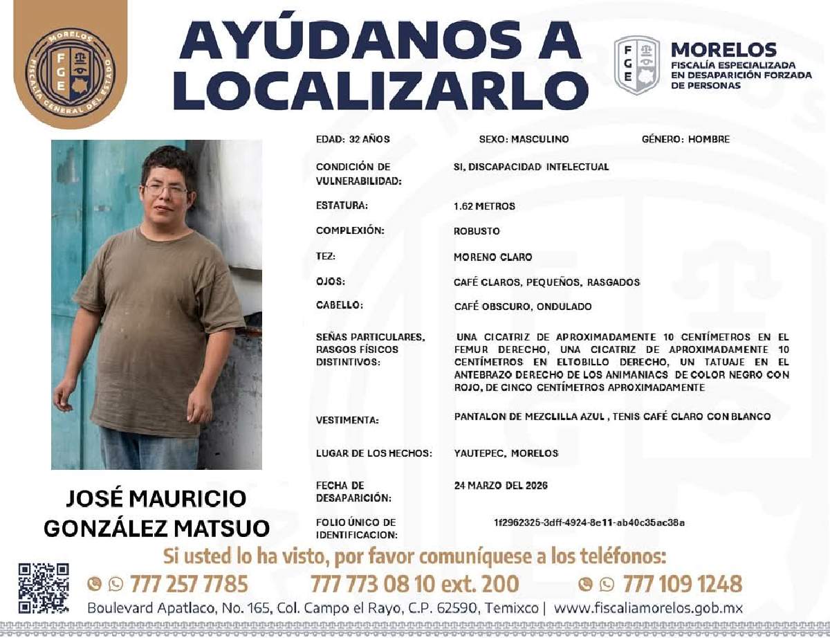 De acuerdo con información de la ficha de búsqueda difundida por la Fiscalía General del Estado (FGE), se trata de quien responde al nombre de José Mauricio González Matsuo, de 32 años de edad.