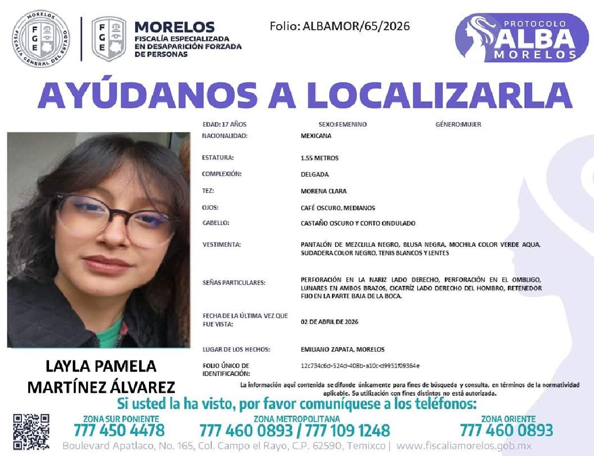 De acuerdo con información de la ficha de búsqueda difundida por la Fiscalía General del Estado (FGE) este viernes, se trata de quien es identificada como Layla Pamela Martínez Álvarez, de 17 años de edad.