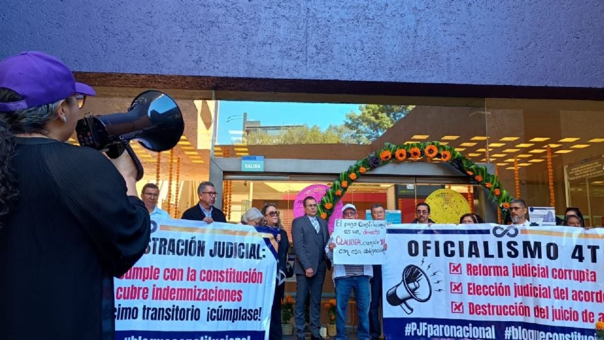 Jueces y magistrados en retiro protestan frente al Órgano de Administración Judicial por el pago de indemnizaciones pendientes; bloquean avenida Revolución en dirección al norte.https://t.co/ti8sAhL2nI