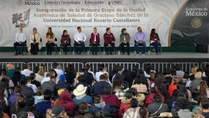 La presidenta Claudia Sheinbaum encabezó la inauguración de la primera etapa del plantel de la Universidad Rosario Castellanos en Soledad de Graciano Sánchez, en San Luis Potosí, donde anunció que todos los estudiantes de esta institución recibirán la beca Gertrudis Bocanegra, apoyo económico que hasta ahora solo se otorgaba en Michoacán.