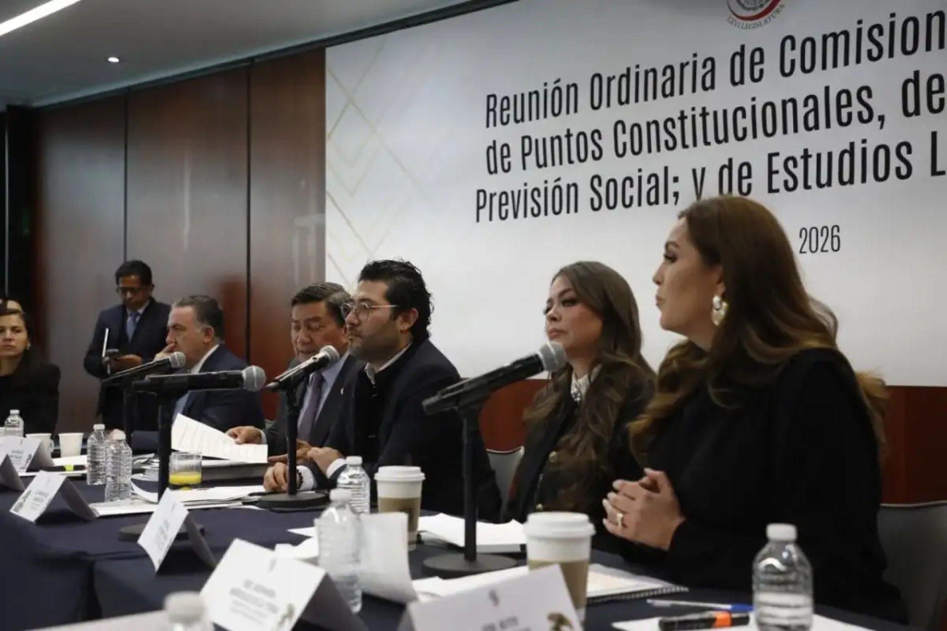 La reunión de las Comisiones de Puntos Constitucionales, Estudios Legislativos y del Trabajo, presididas por Oscar Cantón Zetina, Enrique Inzunza y Geovanna Bañuelos, se suspendió momentáneamente para que los legisladores participaran en la sesión solemne del Senado en memoria del panista Gustavo Sánchez Vázquez. El debate se reanudará una vez concluya la ceremonia.