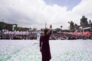 Ciudad de México. Como la primera mujer presidenta, la Jefa del Ejecutivo Federal, Claudia Sheinbaum Pardo, reafirmó que, México va por el camino correcto, esto durante el cierre de su gira nacional de rendición de cuentas con motivo de su primer año de Gobierno, ante miles de mexicanas y mexicanos reunidos en el Zócalo de la Ciudad de México.