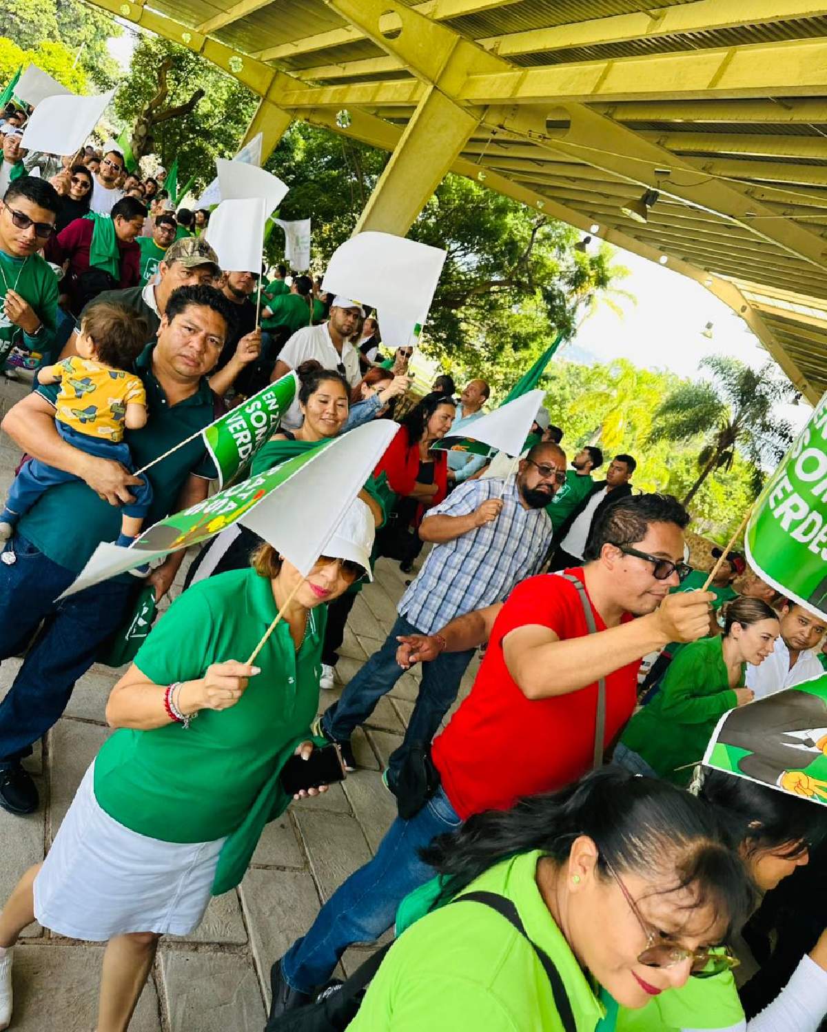 Quiero agradecer a todos por confiar siempre en el Partido Verde en el estado y por siempre darnos ese apoyo y esa calidez humana que nos representa a los morelenses. Quiero también mencionar que para la elección del año 2027 estamos trabajando de cerca con el Comité Nacional. Estamos trabajando de cerca con la gente en los municipios. Hombres y mujeres que más tengan representación son los que van a llevar las candidaturas. Es lo que a nosotros en el Verde nos ha identificado ante el pueblo, que siempre damos oportunidad a la ciudadanía de gobernar, no como los otros partidos, que utilizan el poder sólo para que unos cuantos sean los que lleven los cargos públicos. Nosotros abrimos siempre los espacios y ahí está: le abrimos el espacio a la hoy senadora Juanita Guerra, a su hermana; le abrimos el espacio a Primo Bello, hoy regidor de Jiutepec.
