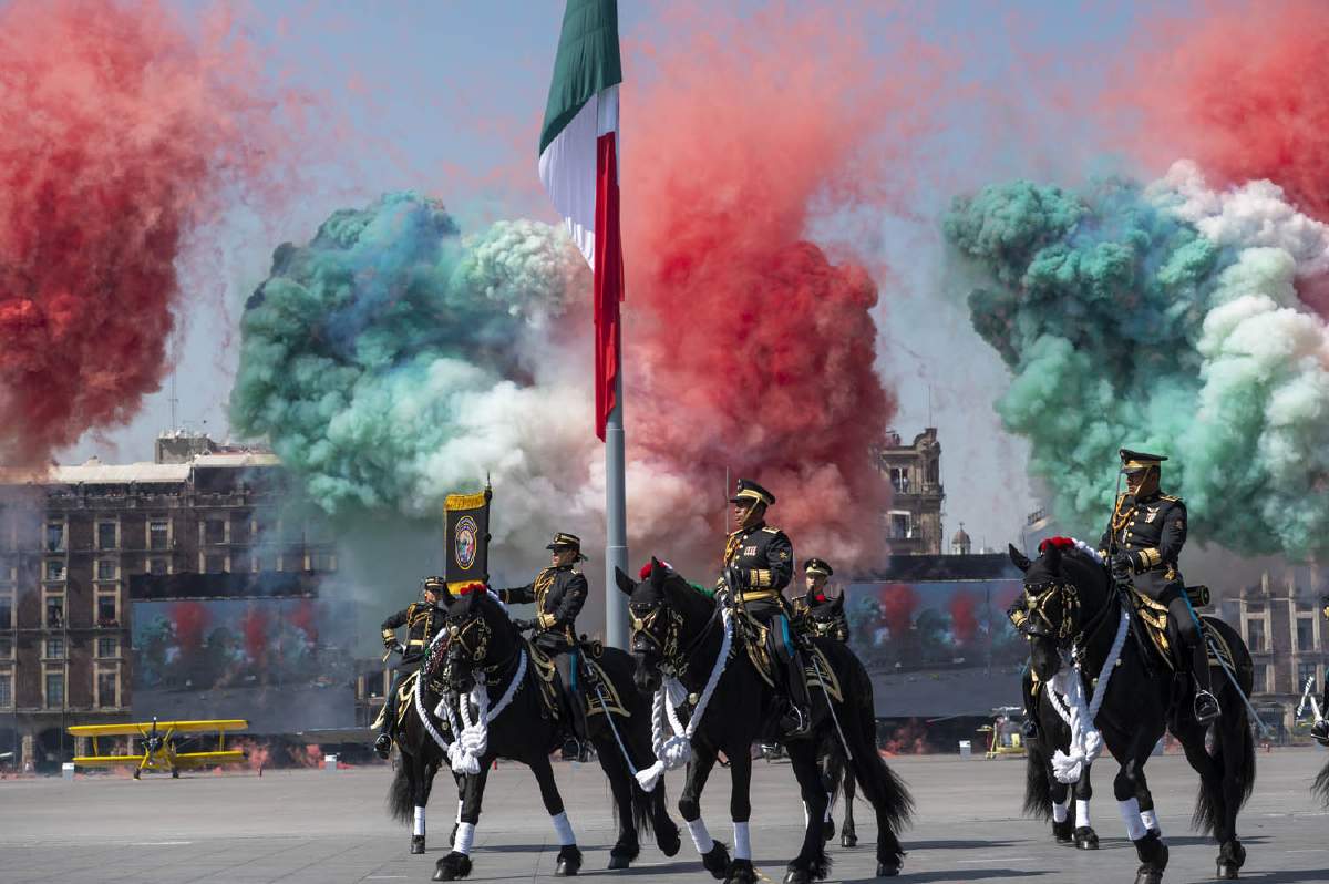 “Desfilaron ante el pueblo de México: una bandera monumental, cuatro estandartes de guerra, dos mil 759 integrantes del Ejército y Fuerza Aérea Mexicanos, 19 deportistas, 100 charros, 44 civiles, 62 niños, 34 vehículos terrestres, nueve vehículos antiguos, 503 caballos, 23 aeronaves, tres águilas. Sin novedad”, refirió.