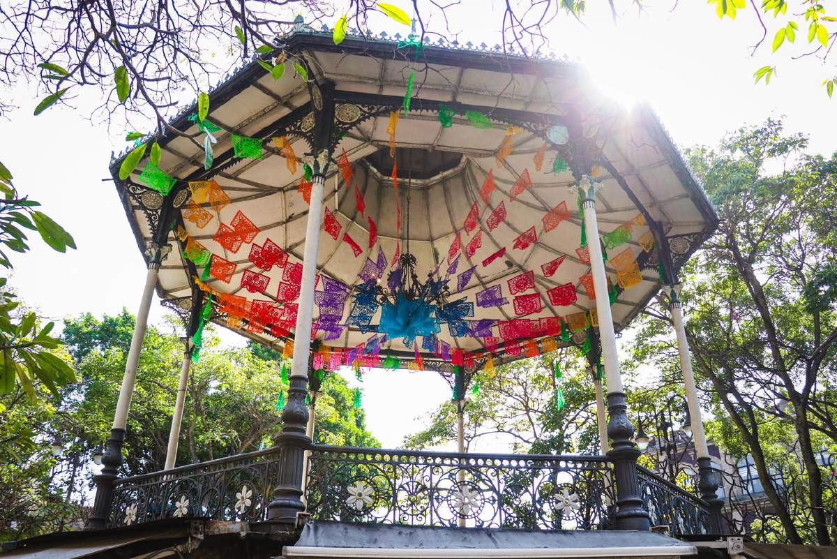 Otro ícono de la arquitectura histórica es el kiosko del Jardín Juárez, instalado en 1890 junto al zócalo y el Palacio de Gobierno estatal. Este espacio se ha convertido en un punto de encuentro cultural y social, albergando conciertos, actividades artísticas y reuniones familiares, uniendo historia, comunidad y tradición.