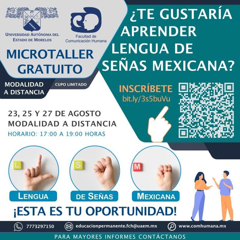 La Facultad de Comunicación Humana de la Universidad Autónoma del Estado de Morelos (UAEM) ofrece a la sociedad en general el micro taller gratuito de lengua de señas mexicanas.