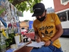Ángel David Fuentes trabaja desde hace cinco años como checador de rutas pero ahora por la crisis económica ocasionada por la pandemia de covid-19, dijo, empezó a vender calcomanías y aromatizantes a los operadores del transporte público para obtener ingresos extras.