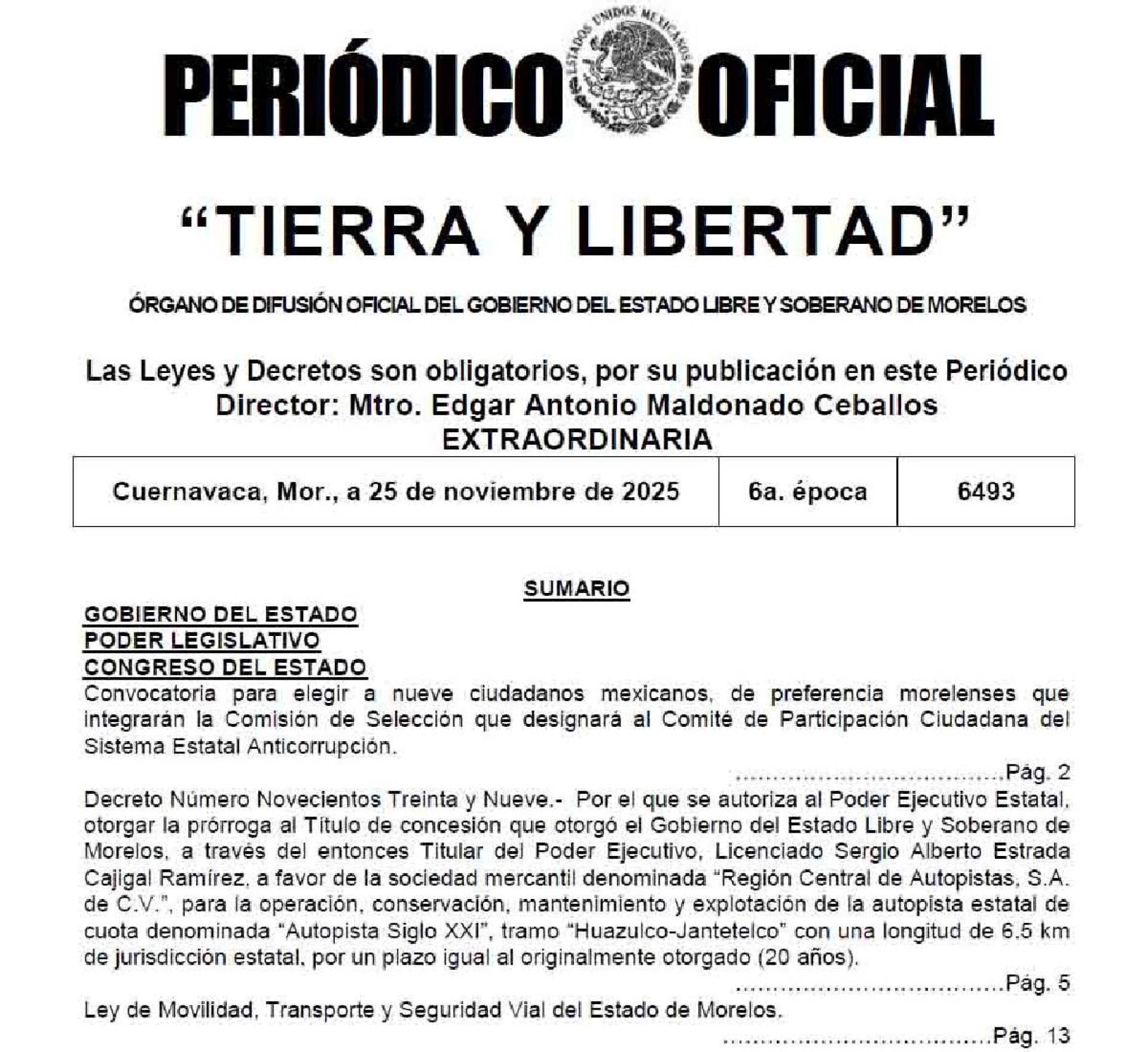 Morelos contará con una Base de Datos Única de Siniestralidad Vial que formará parte del nuevo Sistema Estatal de Información de Movilidad, Transporte y Seguridad Vial establecido en la Ley de Movilidad en vigor.