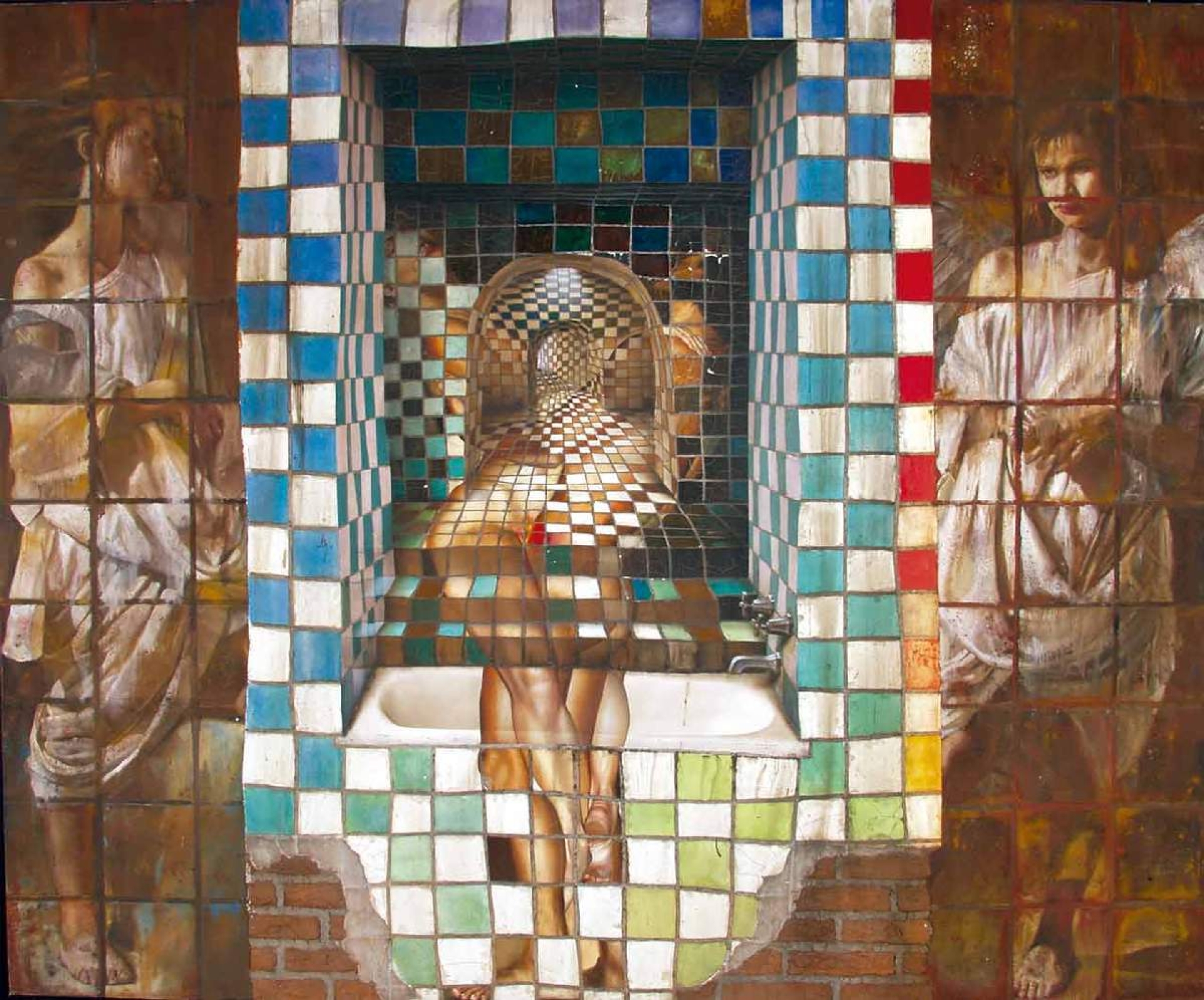 El discurso plástico revela dos líneas de pensamiento: una profundamente espiritual, en las figuras difuminadas que parecen interactuar con el entorno realista. Según me dijera el propio Rafael: “Los seres humanos dejan una huella en los lugares en que han vivido y allí permanecen”. La otra vertiente yace en su pensamiento crítico.
