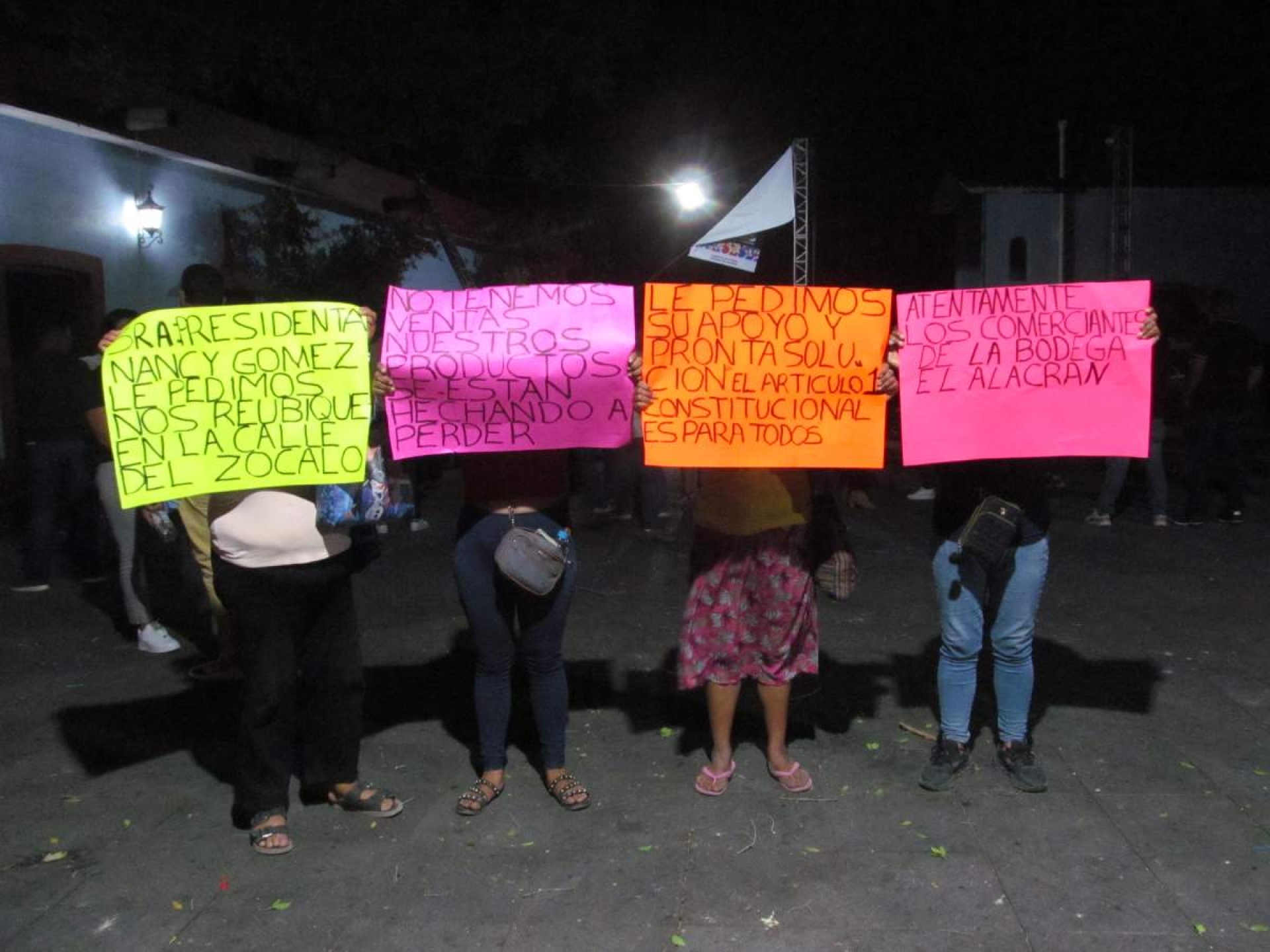 Durante el informe de cien días que rindió la tarde del viernes la presidenta municipal, Nancy Gómez Flores, en el excuartel de Emiliano Zapata, menos de una decena de mujeres se manifestaron con pancartas, solicitando regresar a sus antiguos lugares, ya que en donde las reinstalaron “no venden nada”.