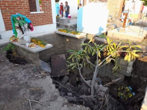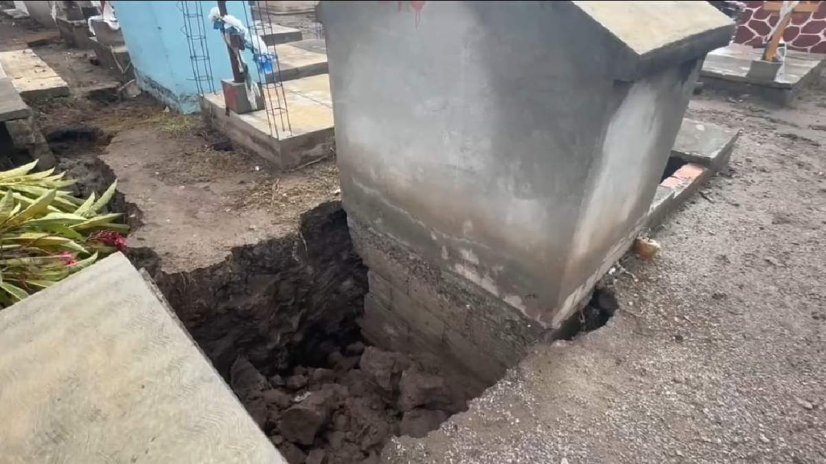 Jesús Celis Gutiérrez, encargado del cementerio, informó que el pasado jueves, tras las intensas lluvias, al menos cinco tumbas colapsaron; a éstas se suman otras dos que ya habían resultado con daños anteriormente y que tampoco han sido rehabilitadas.