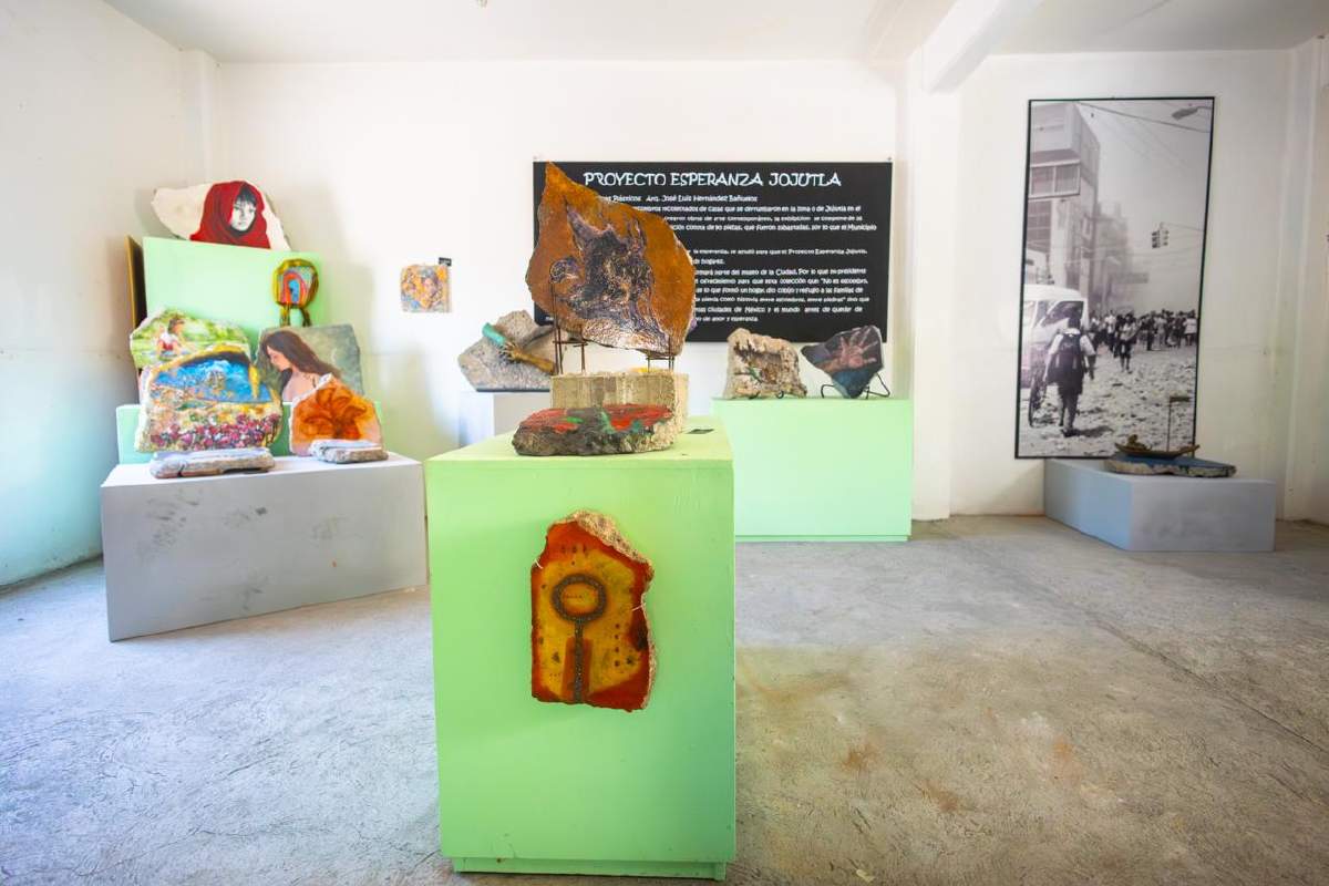 Édgar Assad Gutiérrez explicó que la exposición integra piezas del proyecto “Esperanza”, realizadas a partir de escombros del sismo de 2017 que fueron intervenidos por pintores y escultores, además de incluir obras de creadores morelenses, conformando una amplia diversidad de esculturas y pinturas.