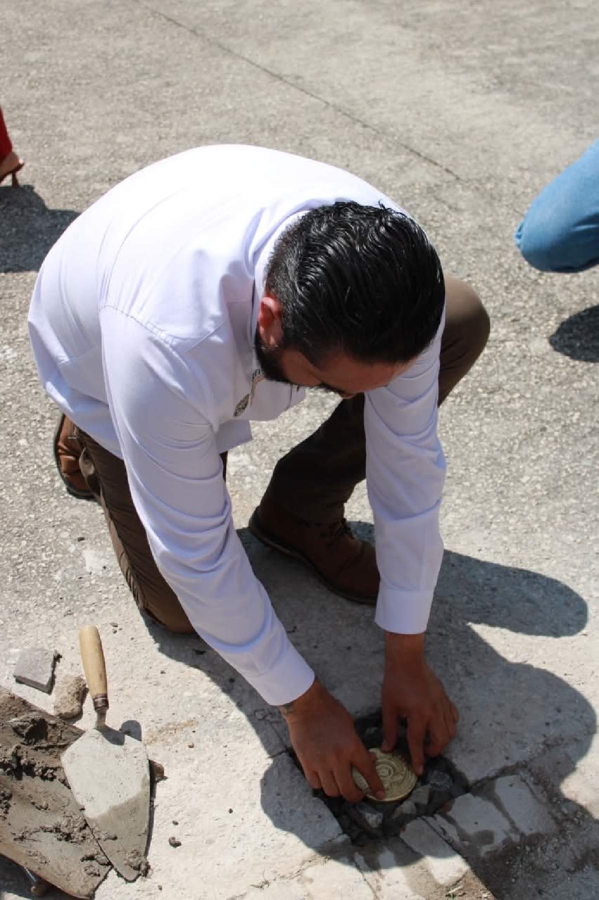 Finalmente se llevó a cabo la colocación de una placa geodésica en el zócalo municipal, la cual servirá para los trabajos de delimitación territorial y podrá ser utilizada por entes públicos y privados para fines técnicos y de planeación.
