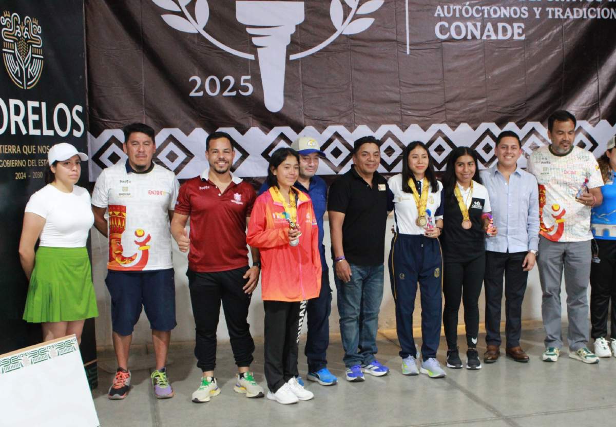 Jojutla.- El alcalde de este municipio, Alan Martínez García, y el director general del Instituto del Deporte y Cultura Física del Estado de Morelos (Indem), Juan Felipe Domínguez Robles, encabezaron la ceremonia de premiación de las disciplinas de pelota purépecha, atletismo y futbol del Encuentro Nacional de Juegos Deportivos Indígenas y Tradicionales Conade 2025, celebrado en este lugar.