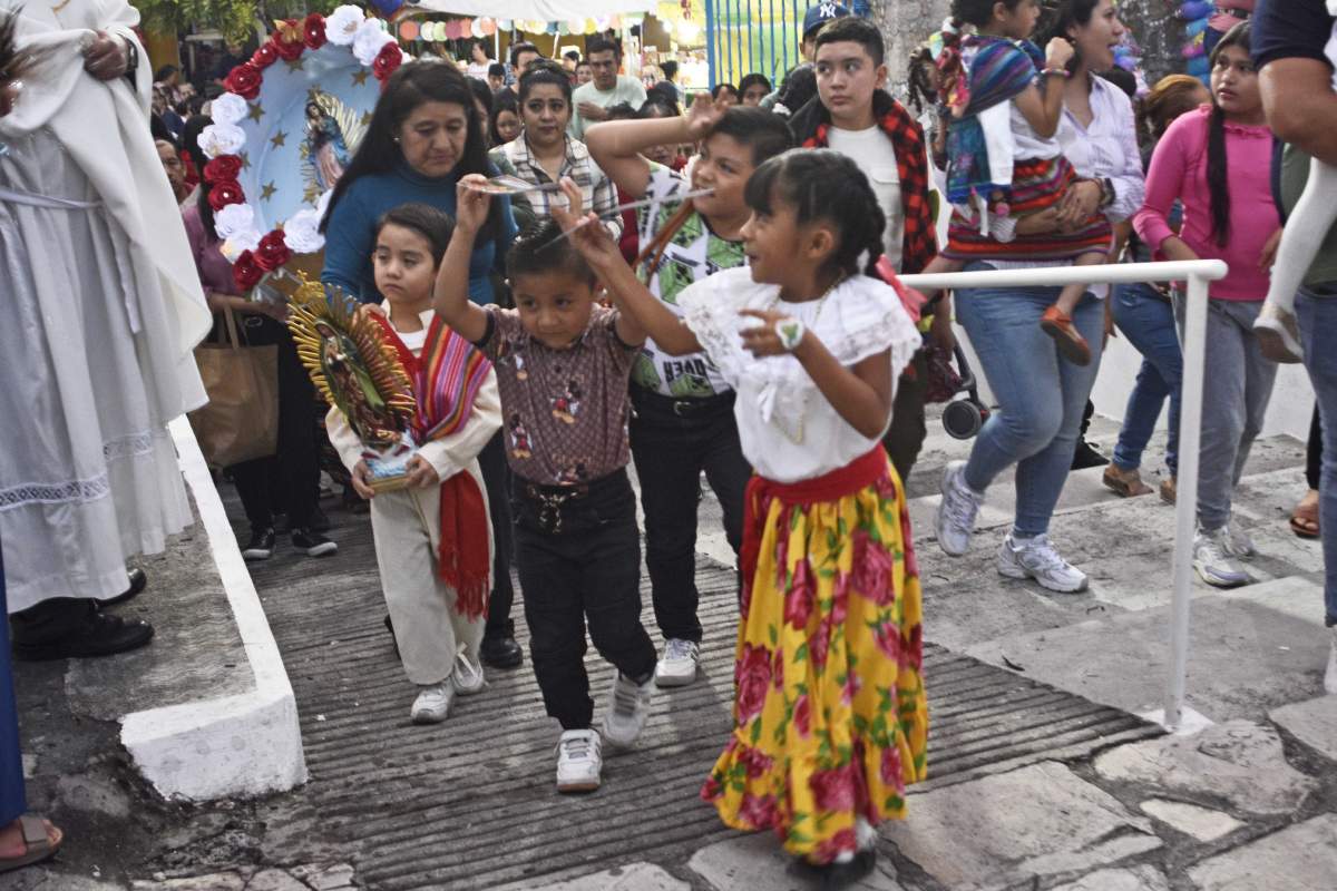 Acompañados por sus padres y familiares, los pequeños pasaron las principales calles para llegar a la iglesia en donde entraron y dieron gracias a la Virgen morena, que el día 12 fue festejada por su cumpleaños.