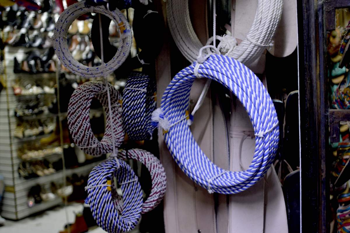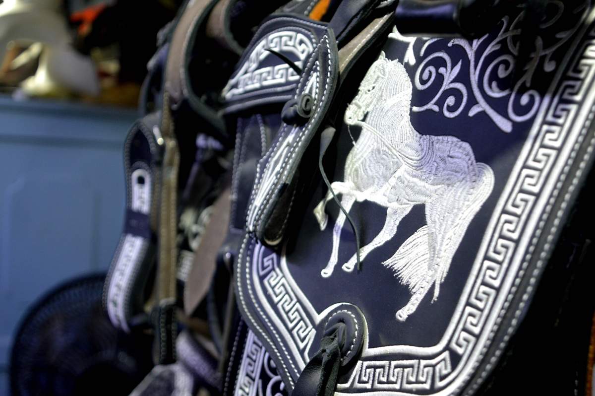 “Hay algo que le llaman vinipiel, que no es más que plástico y es un material pésimo para la charrería, nunca compiten con el cuero o la piel. Te puedes encontrar, por ejemplo, cinturones de 200 pesos de baqueta, los bordados en pita cuestan 7 mil o 7 mil 500, o aquellos bordados en hilo de plata cuestan 18 a 20 mil pesos. La gente los paga, le gusta y los pide, son ya accesorios personalizados y se trabajan por encargo”.